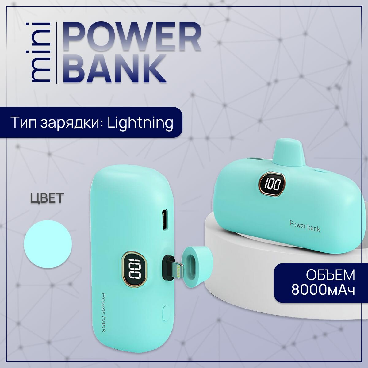 Повербанк мини 8000 mAh с Lightning разъемом, пауэр банк для Айфона, голубой интересное: