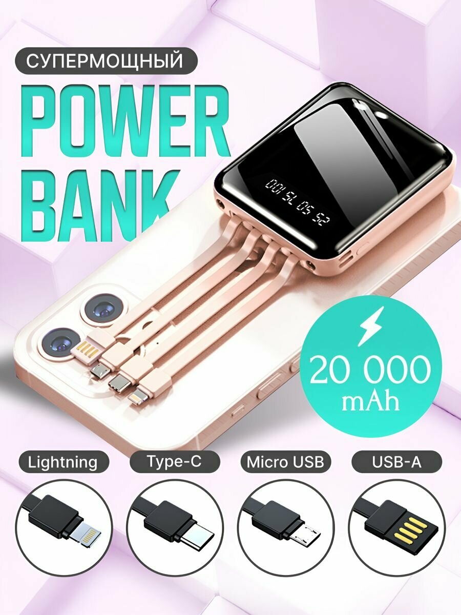 Power bank 20000 внешний для смартфонов телефонов цвет розовый