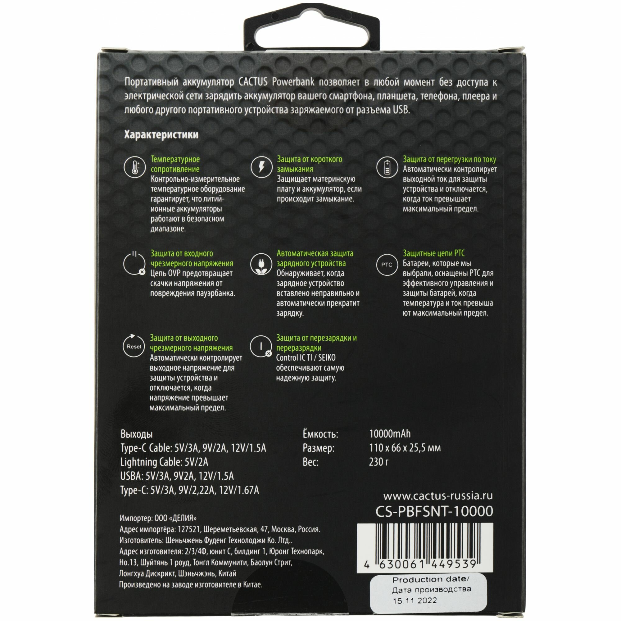 | Емкость | 10000 мА⋅ч |