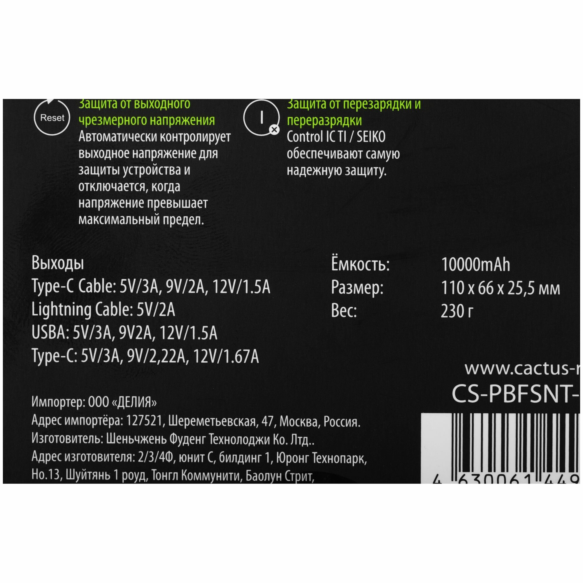 | Выходные разъемы | Lightning / USB Type-A / USB Type-C |