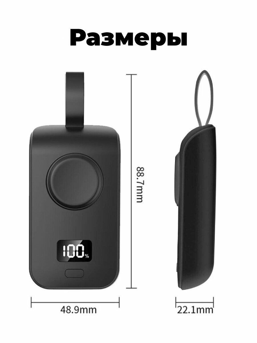 Внешний аккумулятор брелок 2500 mAh для заряда Apple Watch всех поколений с дисплеем интересное: