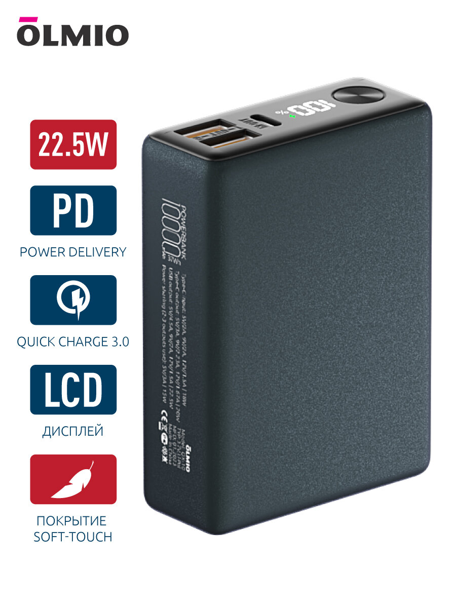 Внешний аккумулятор QX 10000 mAh OLMIO, LED дисплей, PD интересное: