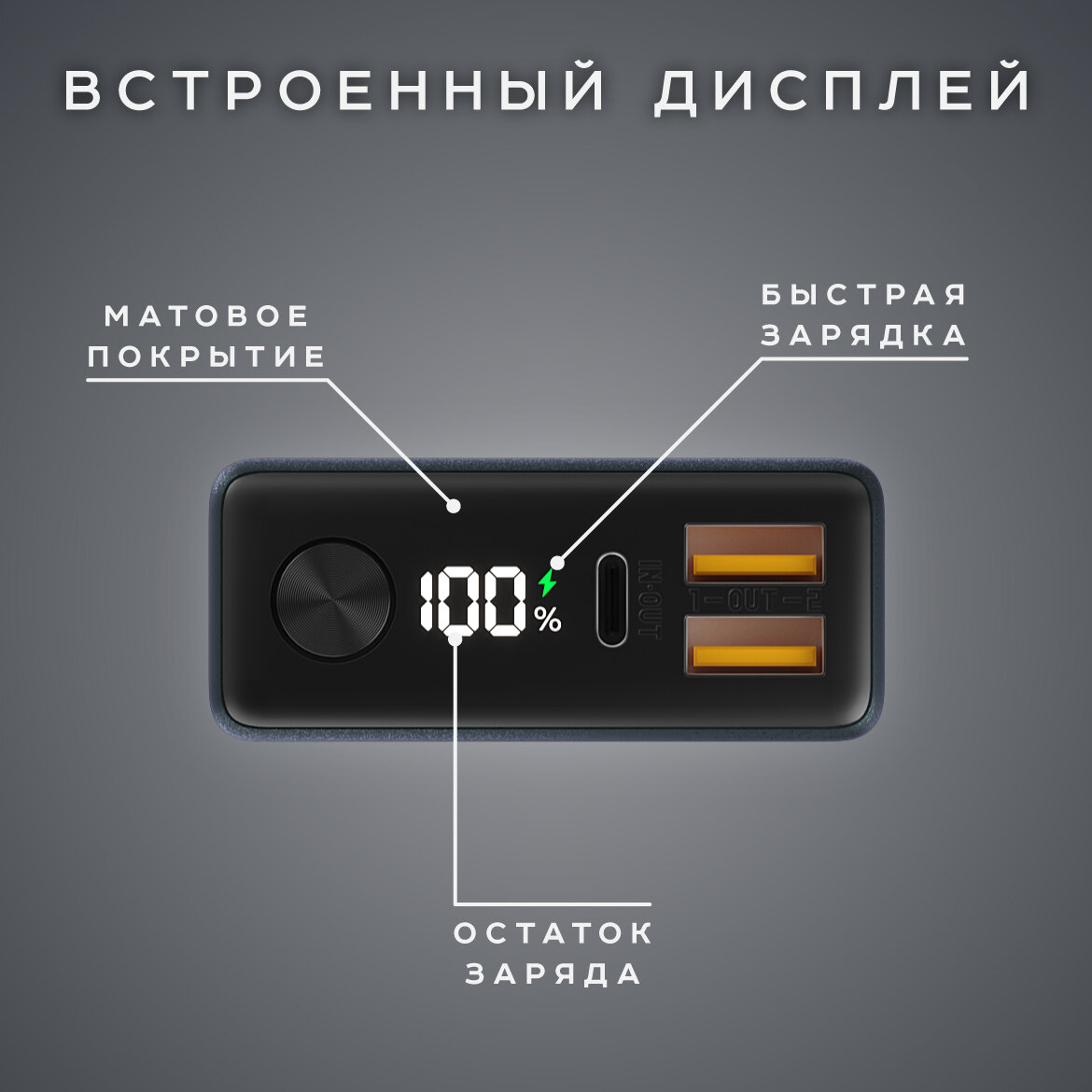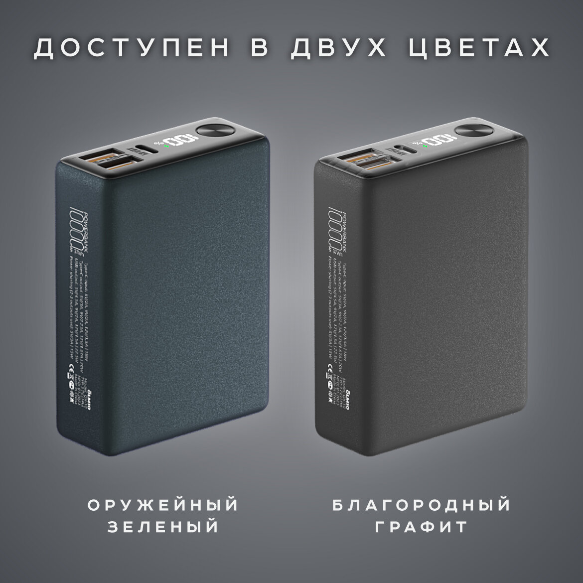 | Особенности | зарядка двух устройств / индикатор заряда |