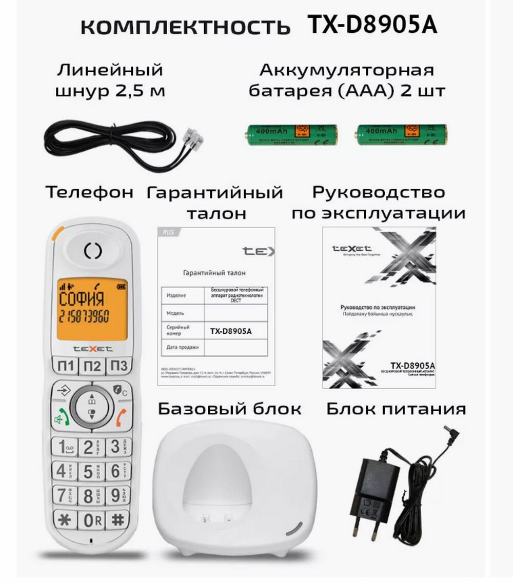 Радиотелефон DECT teXet TX-D8905A белый интересное: