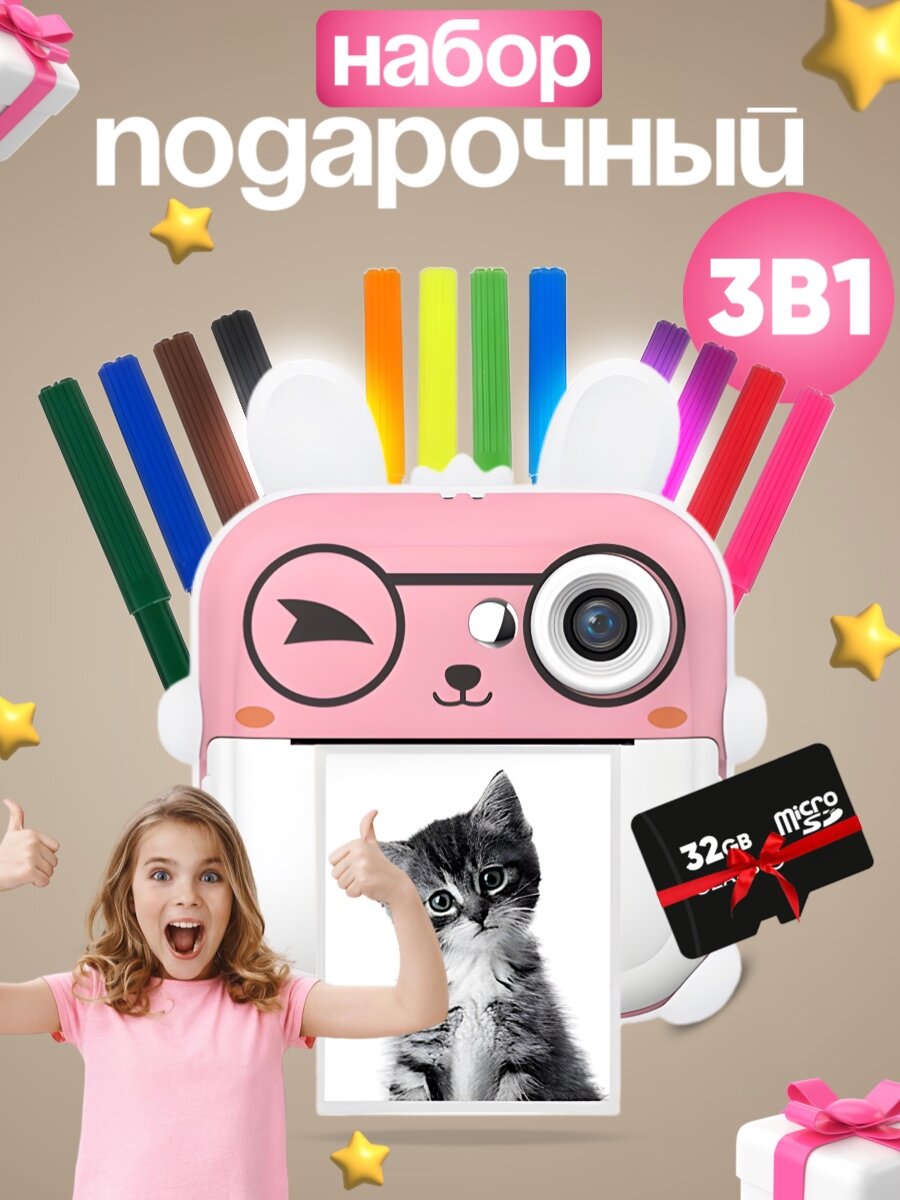Детский фотоаппарат мгновенной печати с картой памяти на 32Gb интересное: