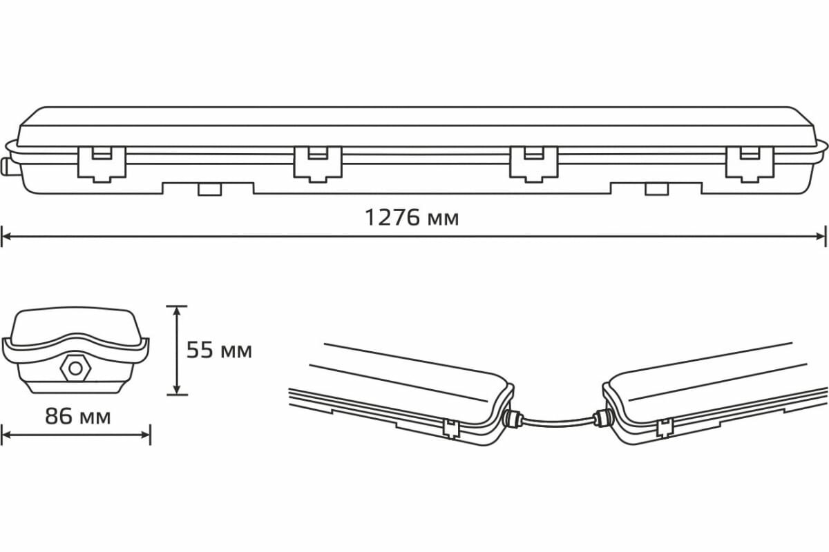 Светильник Lite G13 IP65 1276х86х55мм ДСП линейный для LED ламп 2х1200мм GAUSS 909437212