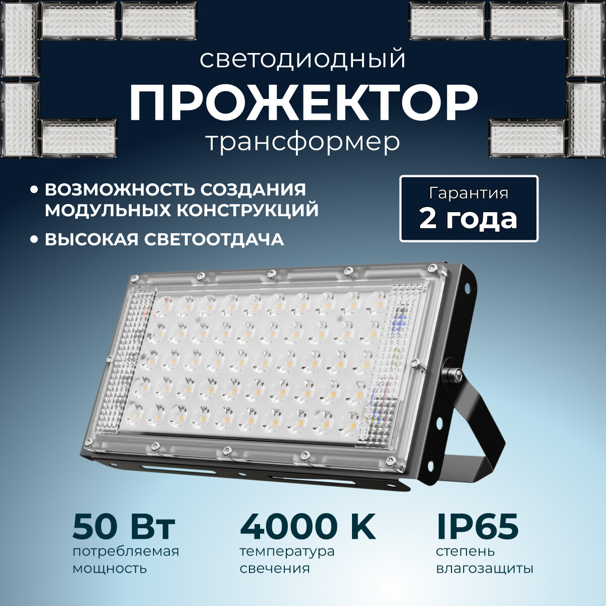 Светодиодный прожектор-трансформер с дневным белым цветом свечения 4000К / 4000Лм / 50Вт / IP65 / 220В-240В/50Гц / 107х212х27мм / черный интересное: