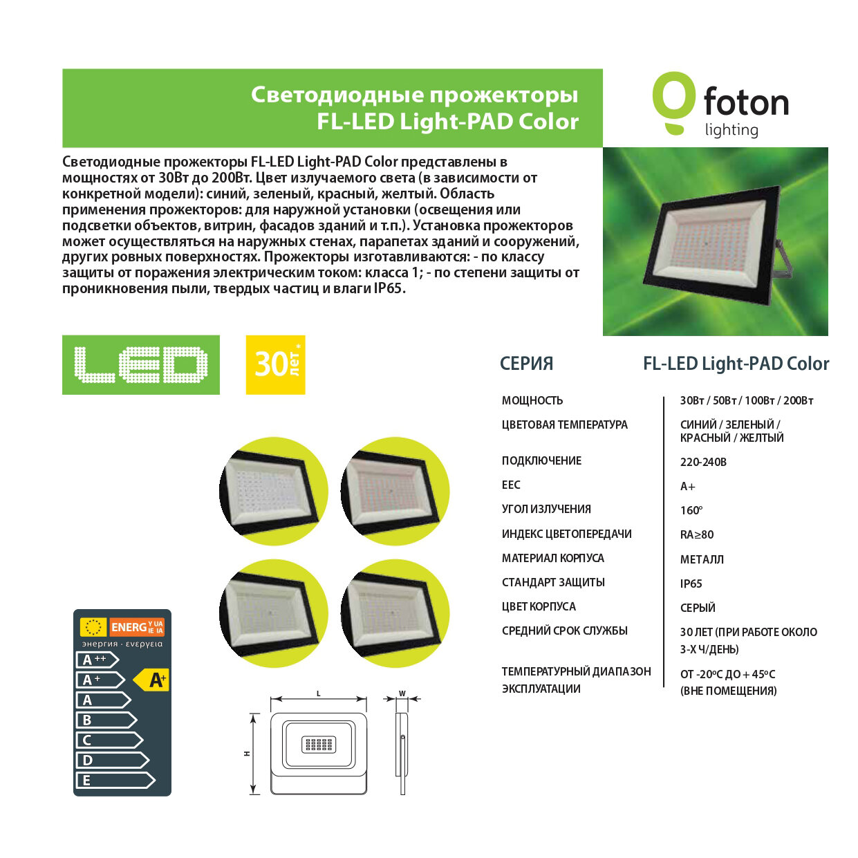 Прожектор цветной светодиодный FL-LED Light-PAD 200W/желтый YELLOW Grey Foton
