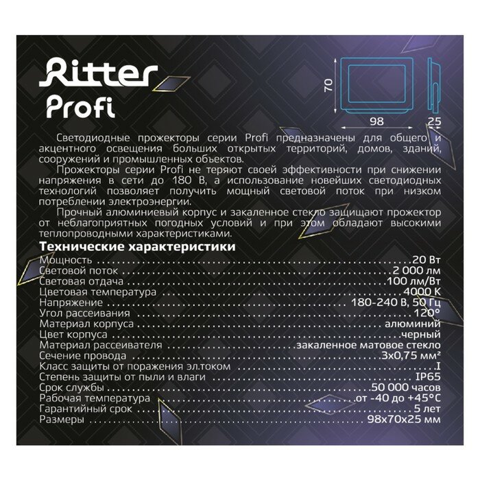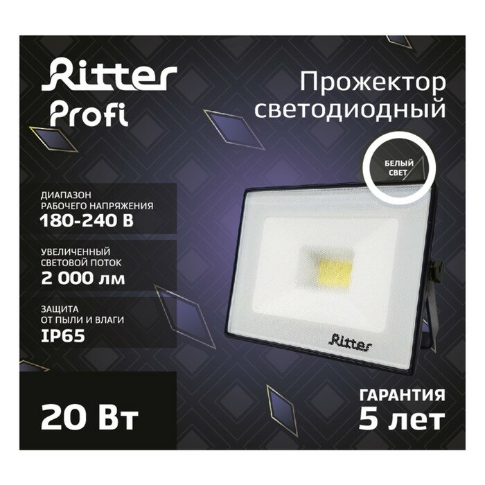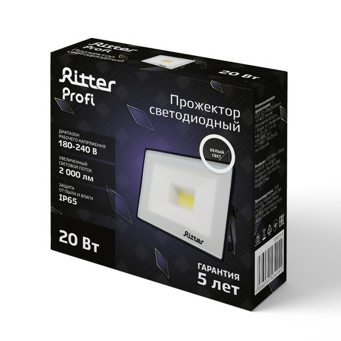 Прожектор светод серия PROFI, 230В, 20Вт, 4000К, 2000Лм, IP65, черн, гарантия 5 лет 53415 4 интересное:
