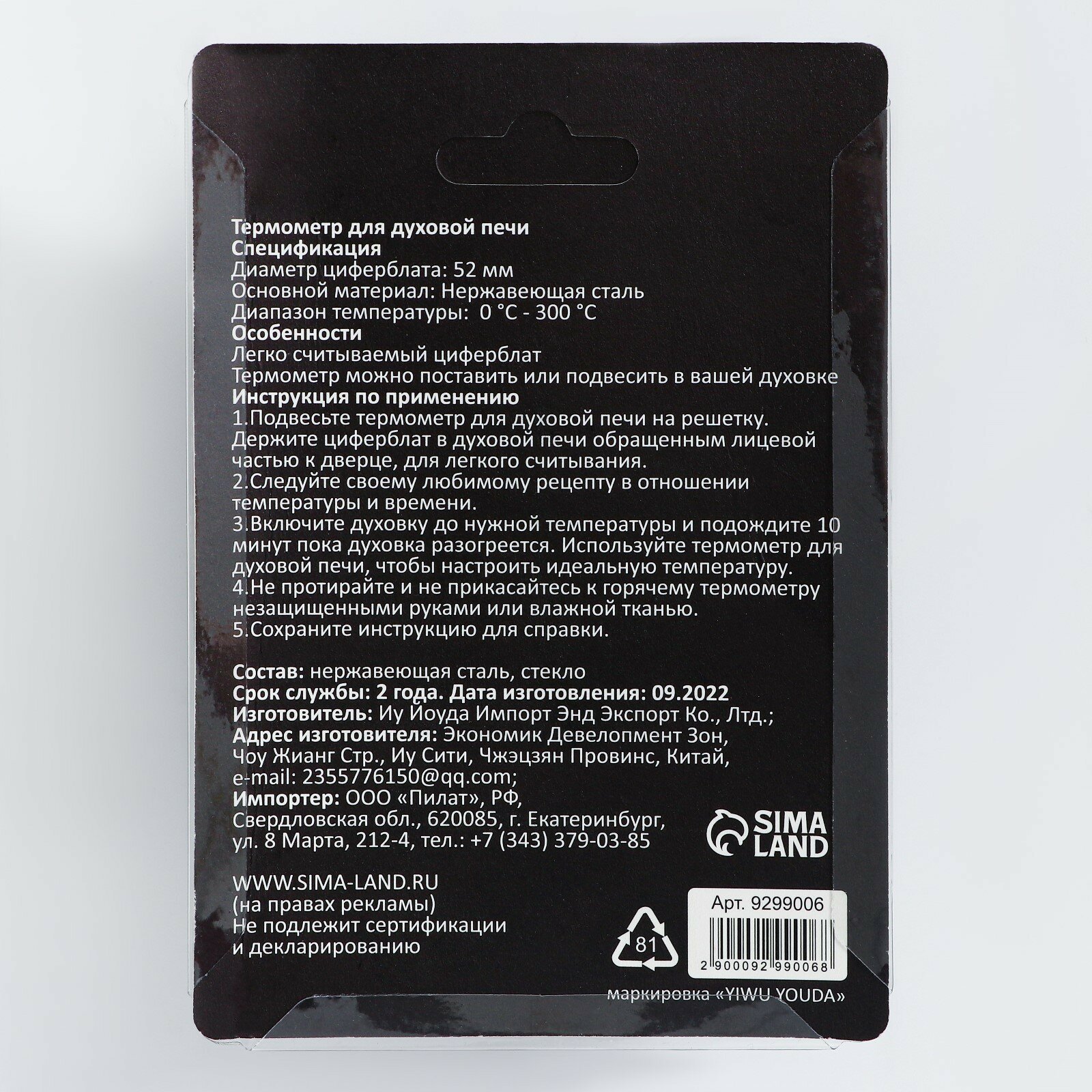 Ниже Вы можете прочитать отзывы на Термометр "Для духовой печи", 50 -300 °C, 6 х 7 см, ознакомится с подробными характеристиками, посмотреть интересные обзоры и фотографии на Термометр "Для духовой печи", 50 -300 °C, 6 х 7 см.