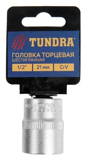 Купить Головка торцевая шестигранная тундра, под квадрат 1/2", 21 мм, CrV