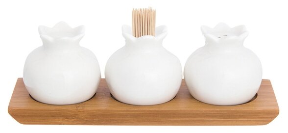 Вазочка под зубочистки + набор для специй 3 пр. 18*6*6 см 50 мл "Айсберг" на дер. подст. интересное: