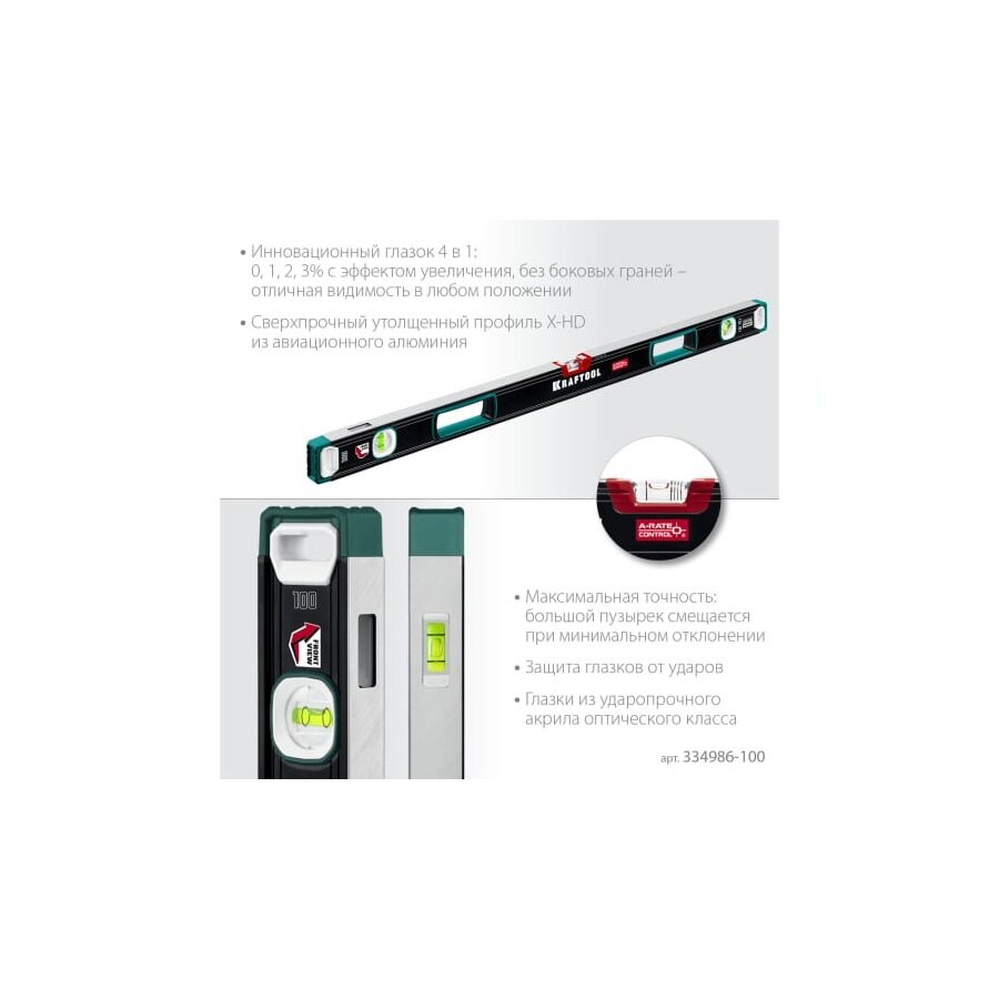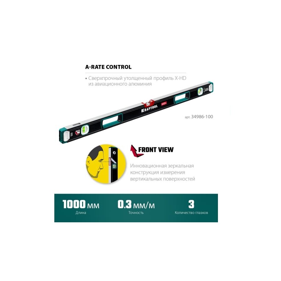 Уровень Kraftool A-RATE CONTROL 600 мм, сверхпрочный уровень с зеркальным глазком