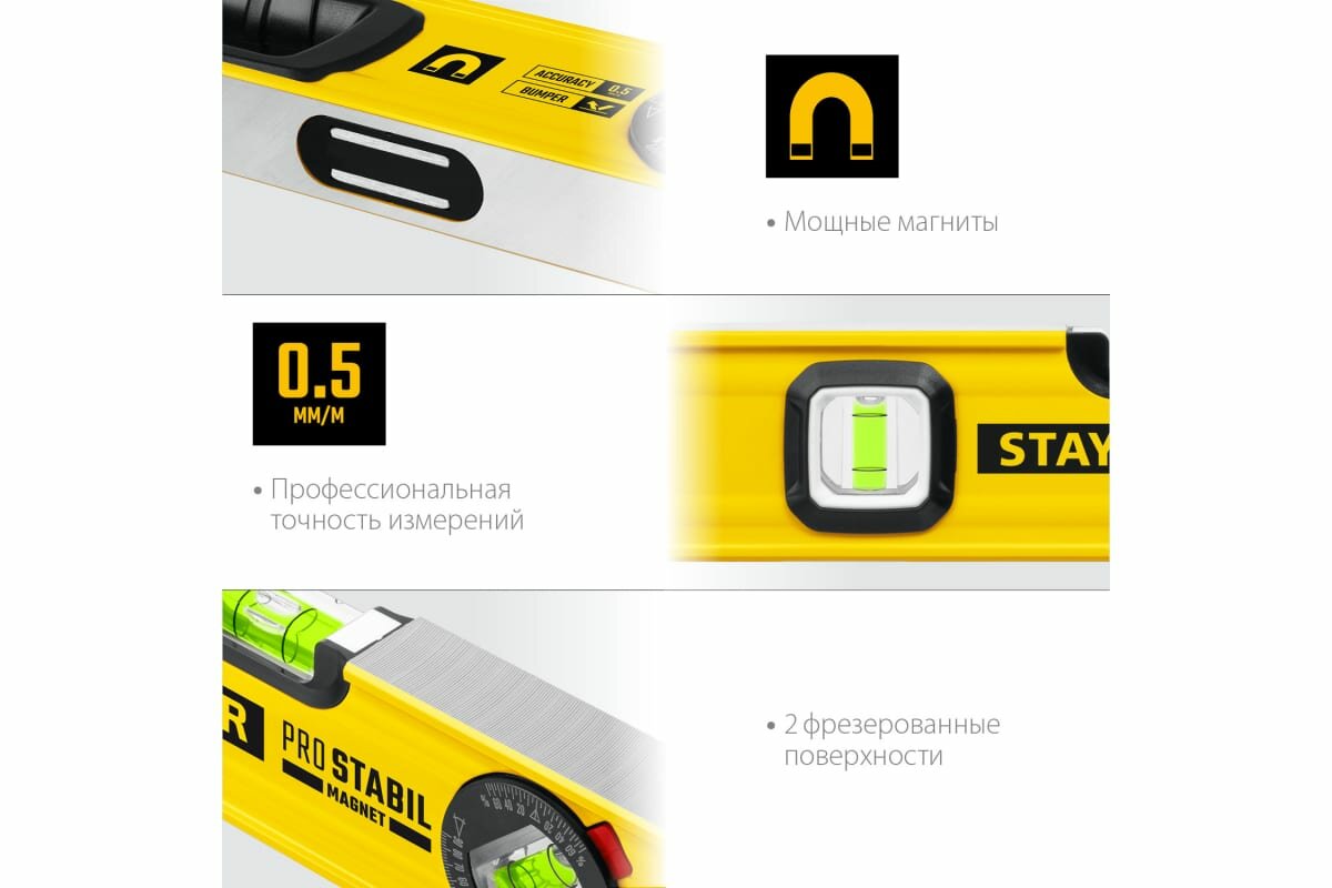 STAYER ProStabil Magnet 1500 мм уровень магнитный с двумя фрезерованными поверхностями
