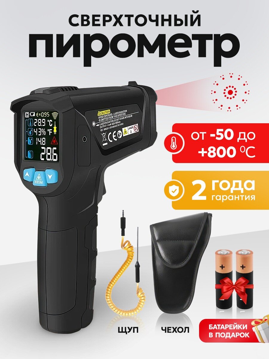 | Дополнительная информация | комплектация пирометр, батарейки, чехол, провод |