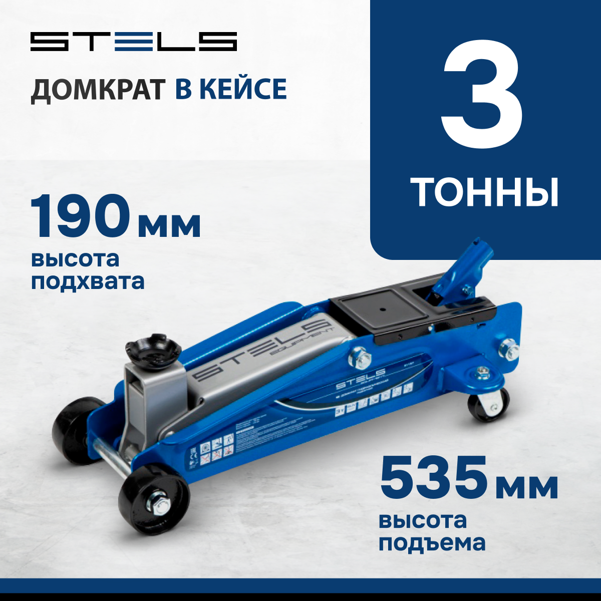 Домкрат гидравлический подкатной, высокий подъем, 3т, SUV, 190-535 мм, в кейсе Stels интересное: