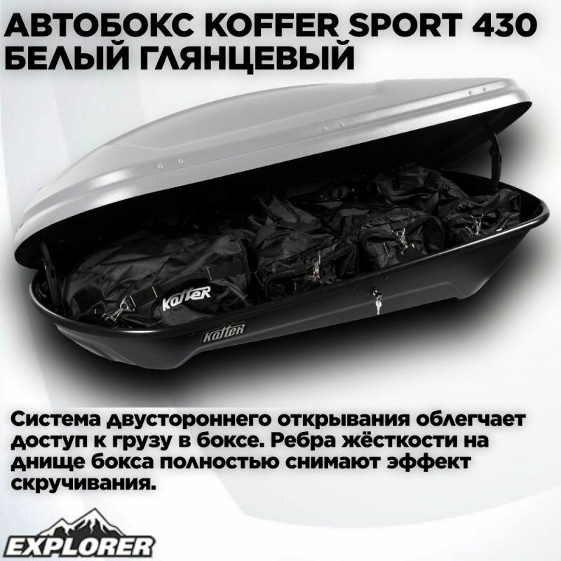 Автомобильный бокс (багажник на крышу) Koffer Sport 1860х850х400 белый глянец (duo open) 430л интересное: