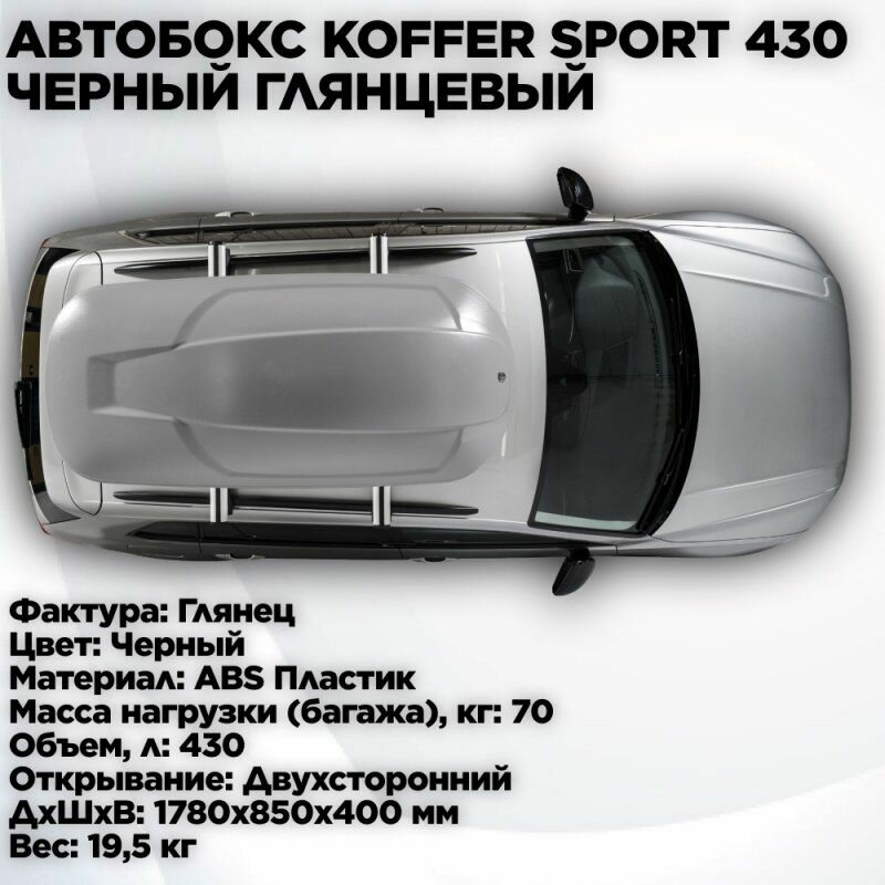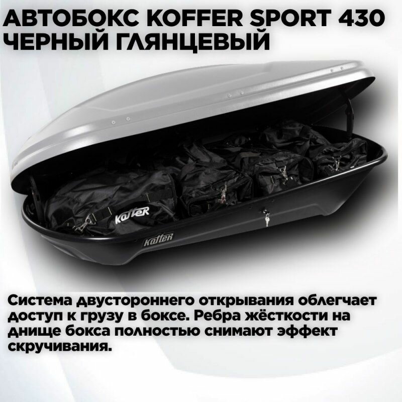 Автомобильный бокс (багажник на крышу) Koffer Sport 1860х850х400 черный глянец (duo open) 430л интересное: