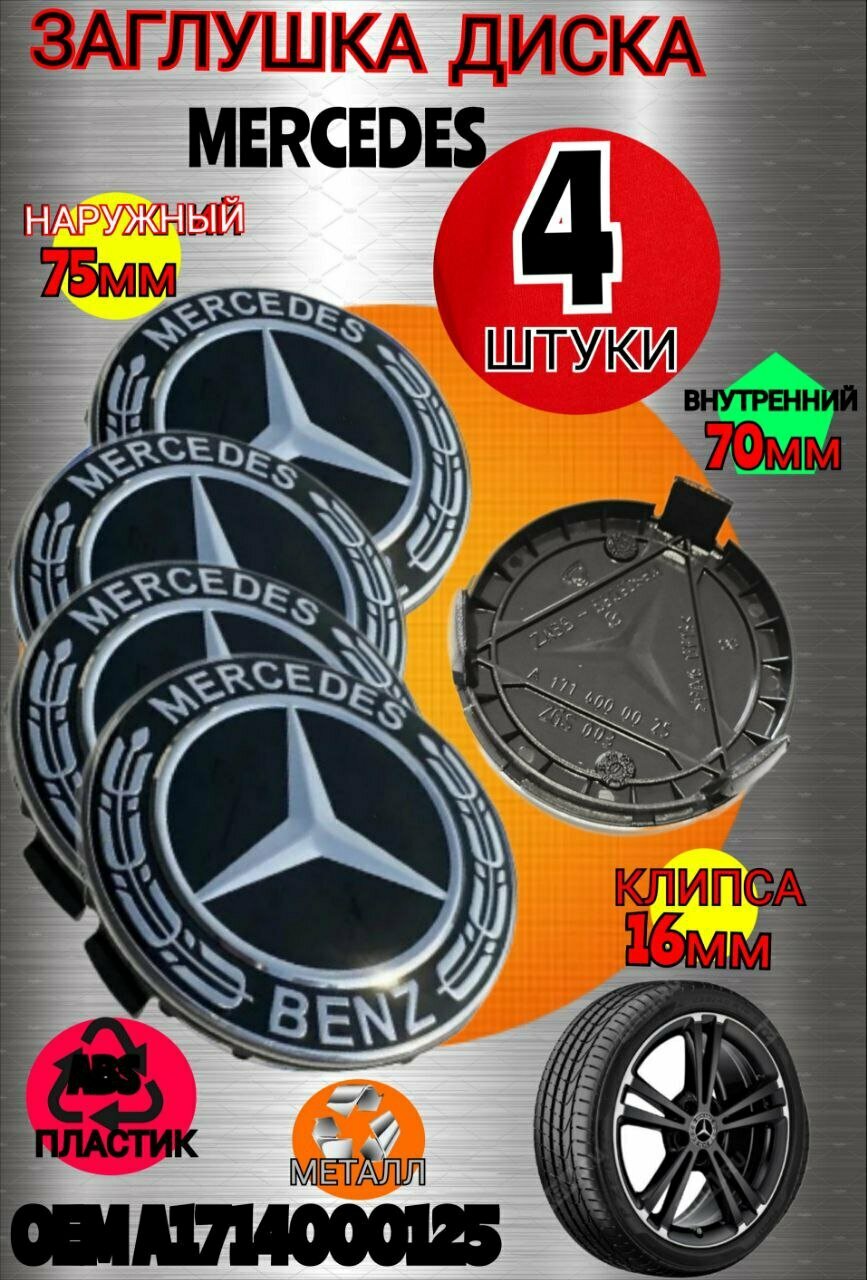 Заглушка диска/Колпачок ступицы литого диска Мерседес Mercedes-Benz мм 70-75-цвет черный хром 4 штуки интересное: