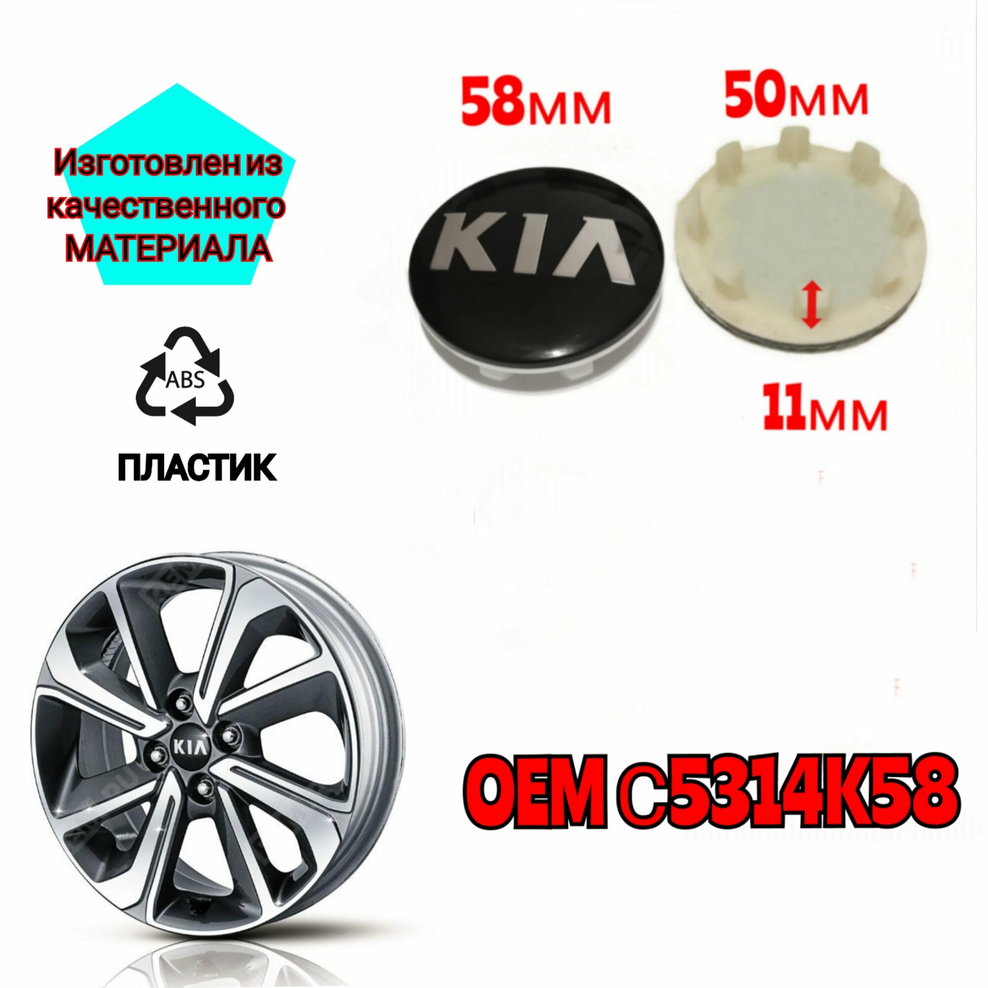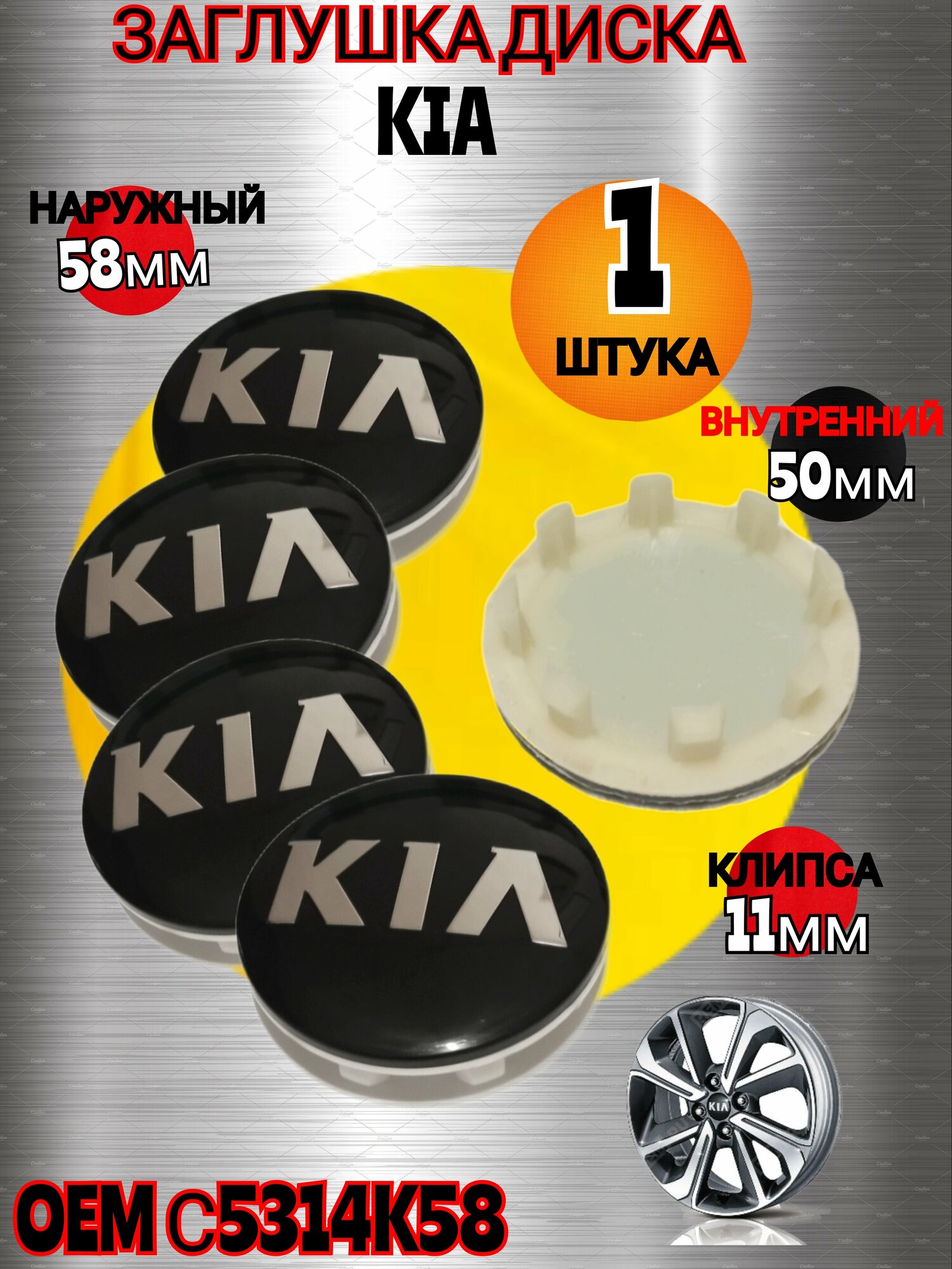 Заглушка диска/Колпачок ступицы литого диска KIA КИА 58-50 цвет черный интересное:
