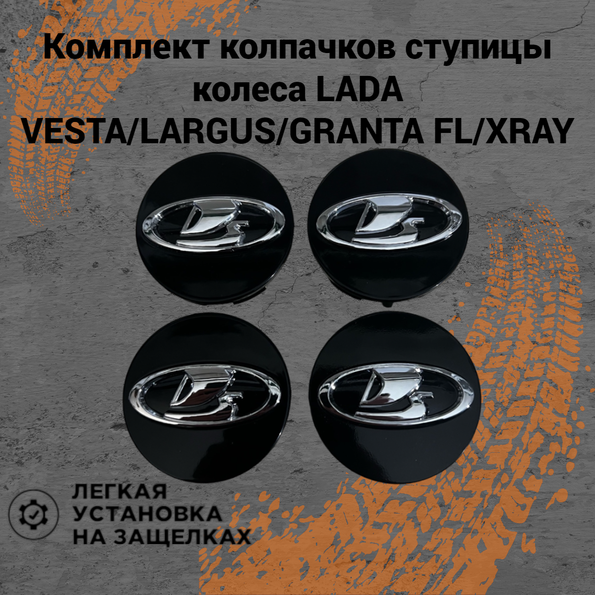 Купить Колпачки ступицы колеса с фиксатором заглушки на литые диски Lada Vesta/SW/Cross/Granta FL/Niva Travel/Largus комплект 4шт. Черный глянец
