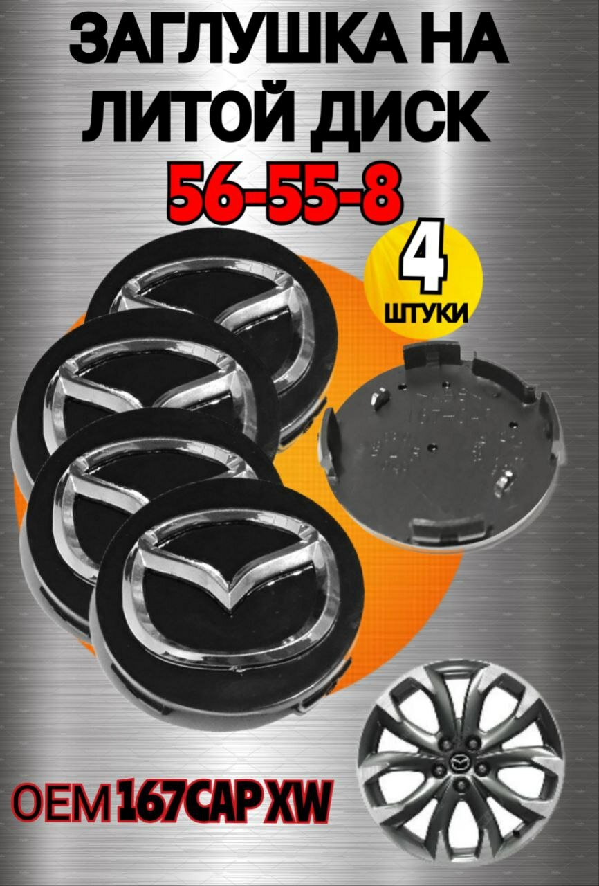 Заглушка диска/Колпачок ступицы литого диска MAZDA мазда 56-55 мм цвет черный 4 штуки интересное: