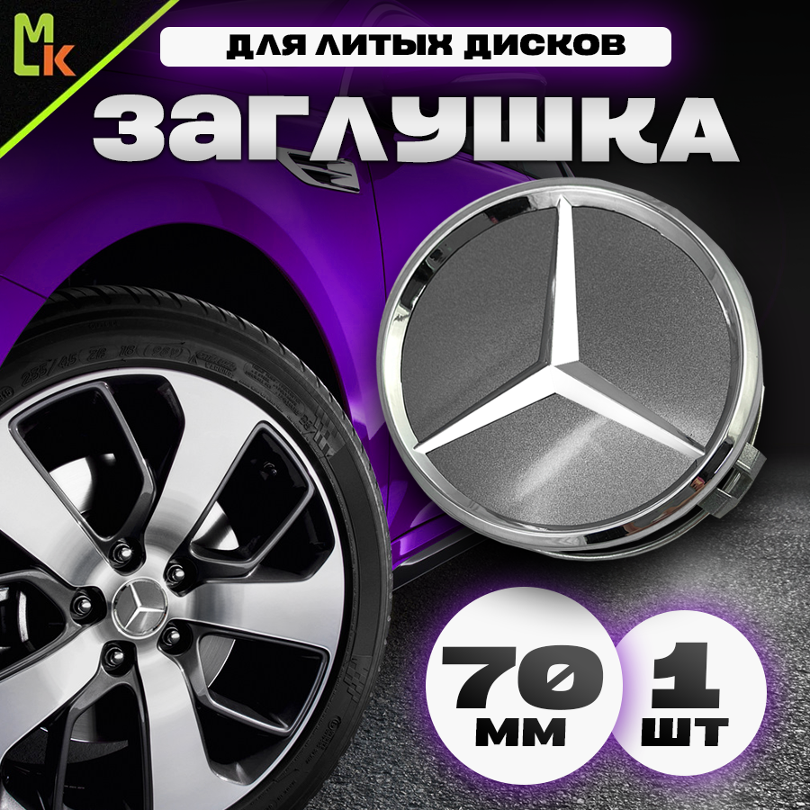 Купить Колпачки заглушки на литые диски автомобиля / Mahinokom / Мерседес/ посадочный диаметр 70 мм, комплект 1 шт. Серебро