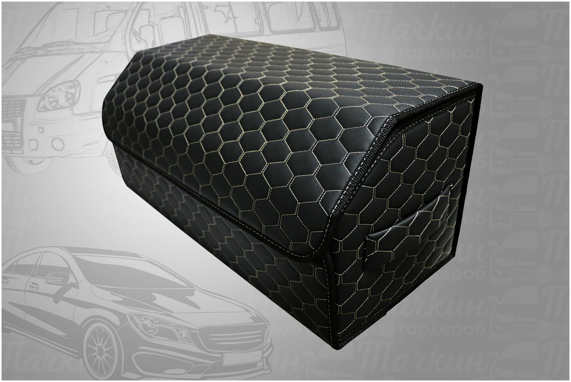 Купить Саквояж/органайзер в багажник автомобиля 70х30х30 рисунок соты черн/строчка беж/бокс/кофр для авто