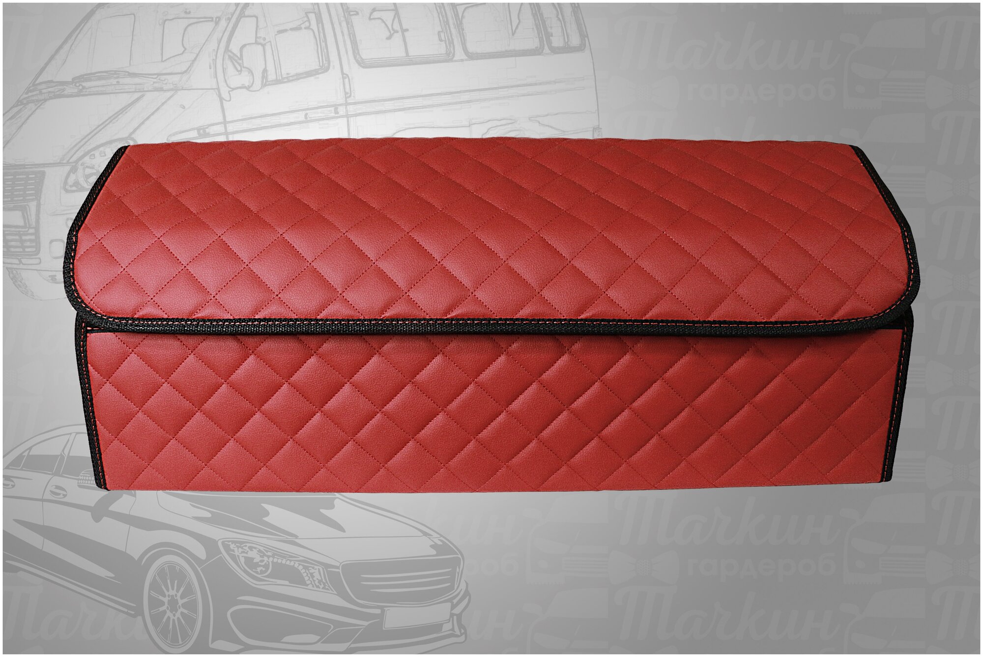 Саквояж-органайзер в багажник автомобиля 70х30х30 рисунок фигурный ромб красный/строчка черная/окантовка черн/саквояж/бокс/кофр для авто