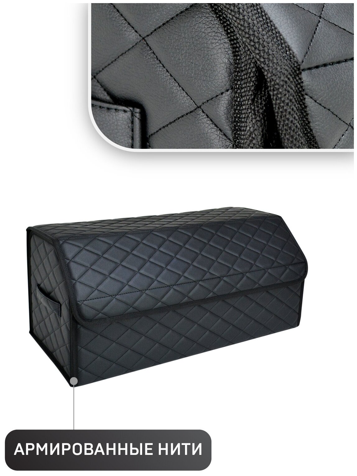 Саквояж в багажник автомобильный эко кожа черная синий ромб, объем 45 л