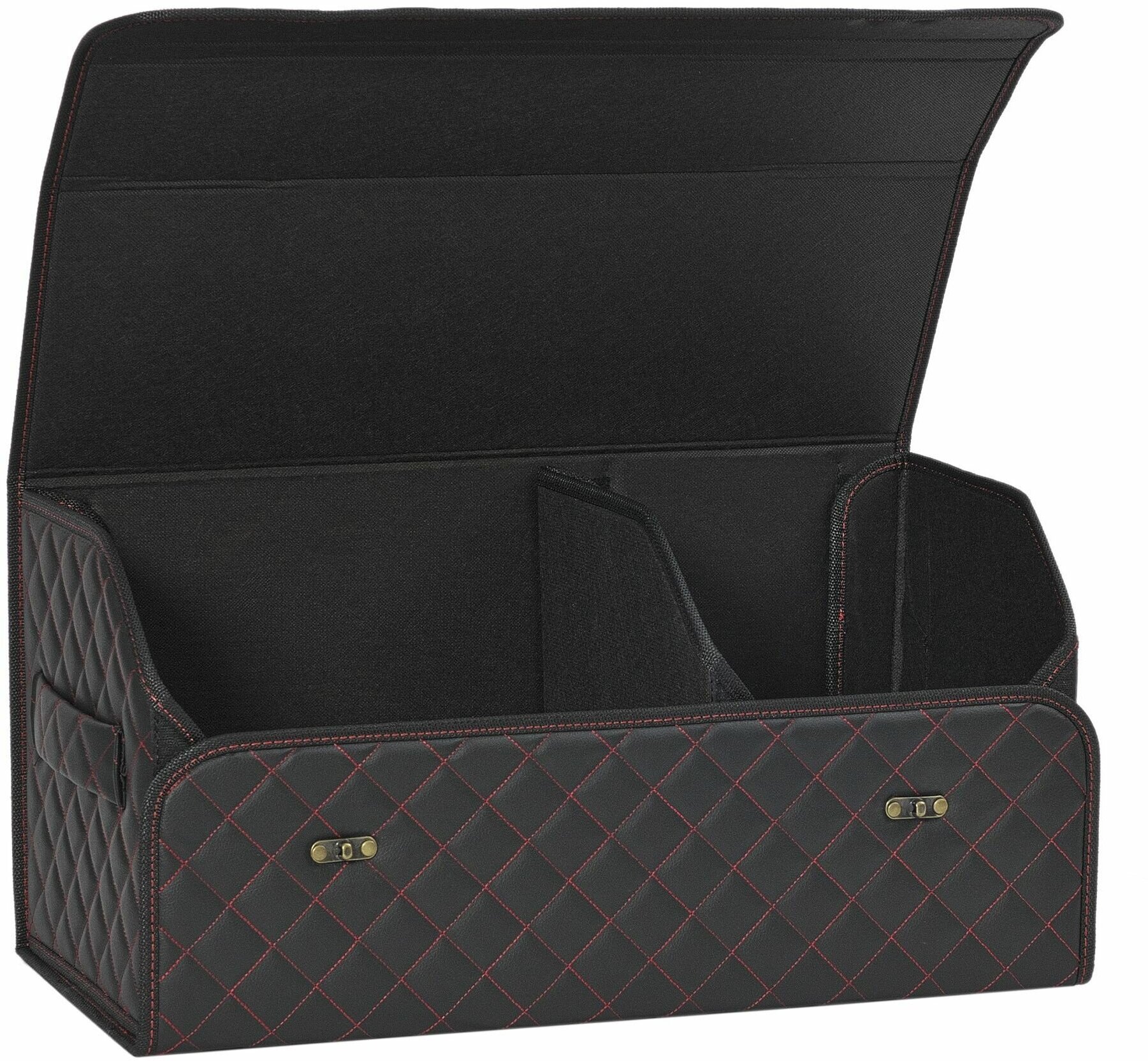 Сумка-органайзер в багажник автомобиля, квадрат, цвет черный, красная нить, черный кант, размер 500 мм