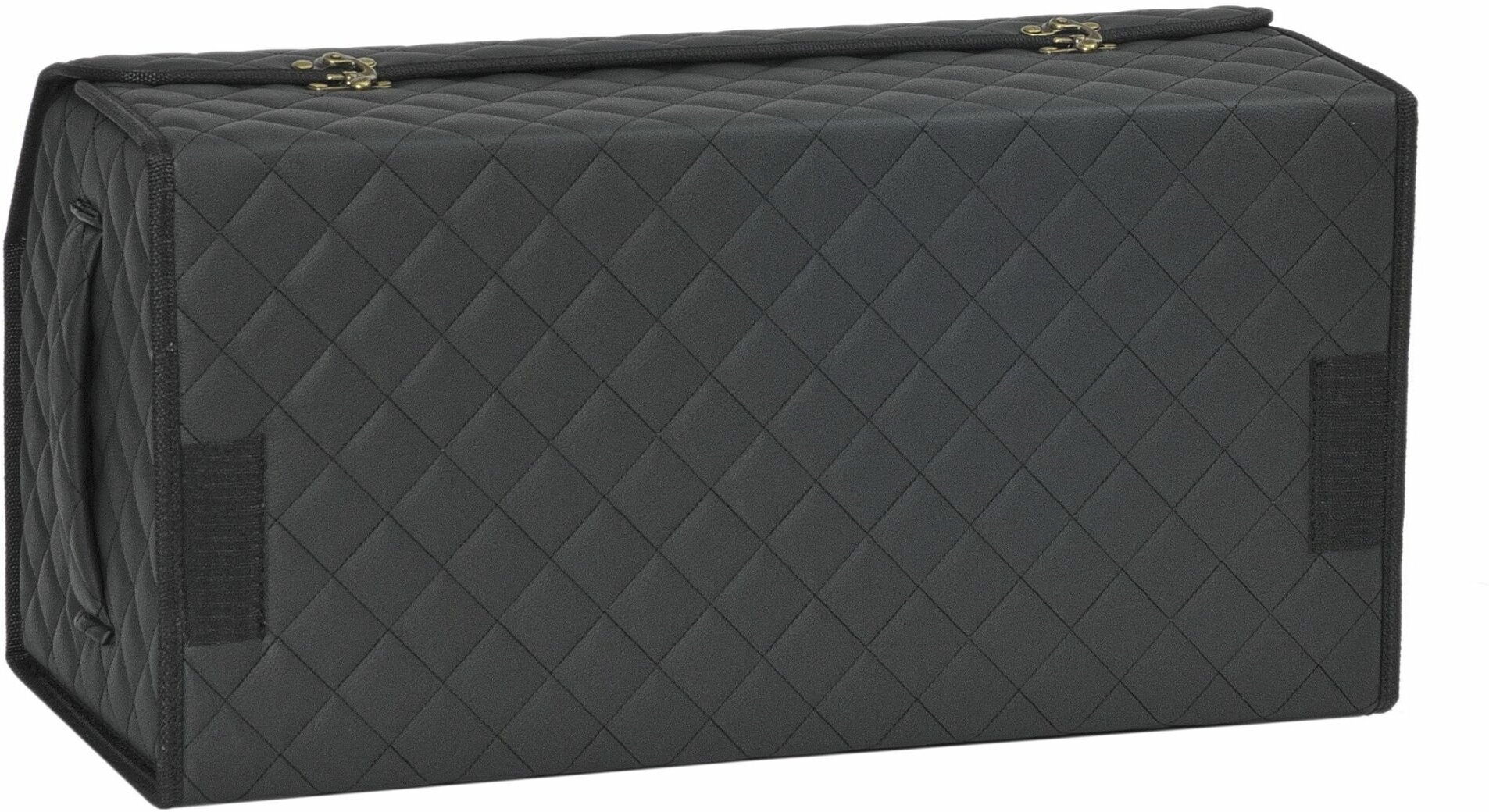 Саквояж в багажник автомобильный эко кожа черная синий ромб, объем 45 л