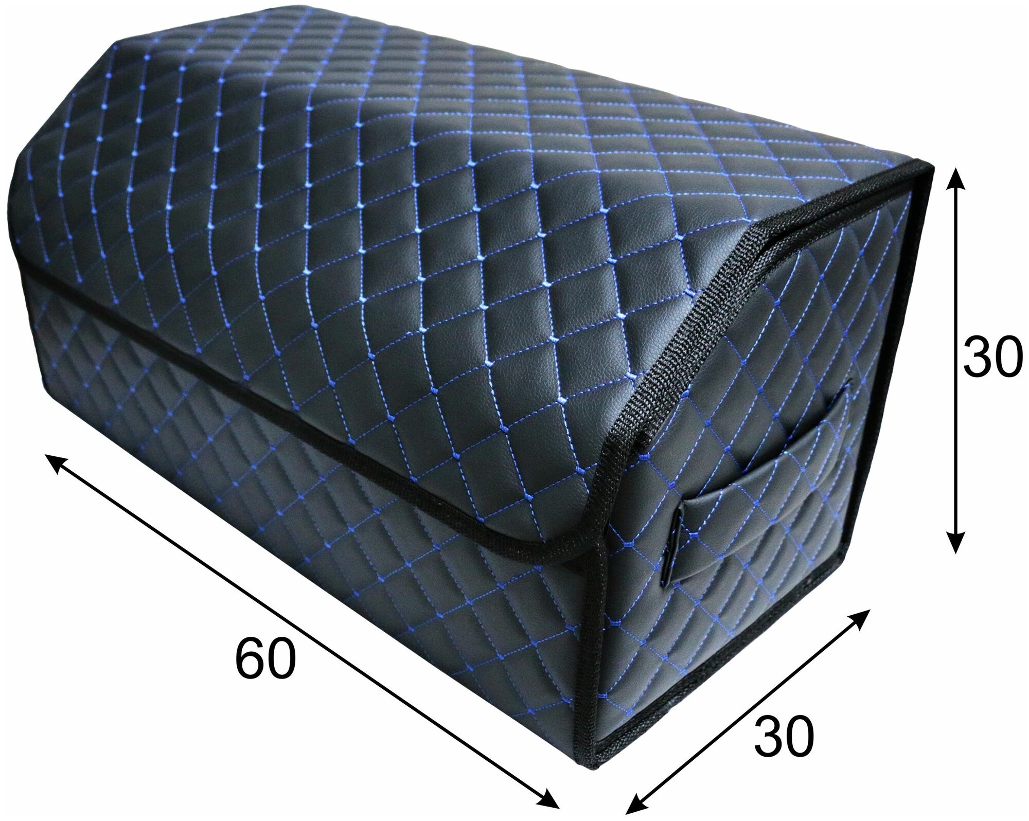 Органайзер в багажник автомобиля 60х30х30 рисунок фигурный ромб черный/строчка синяя/саквояж/бокс/кофр для авто