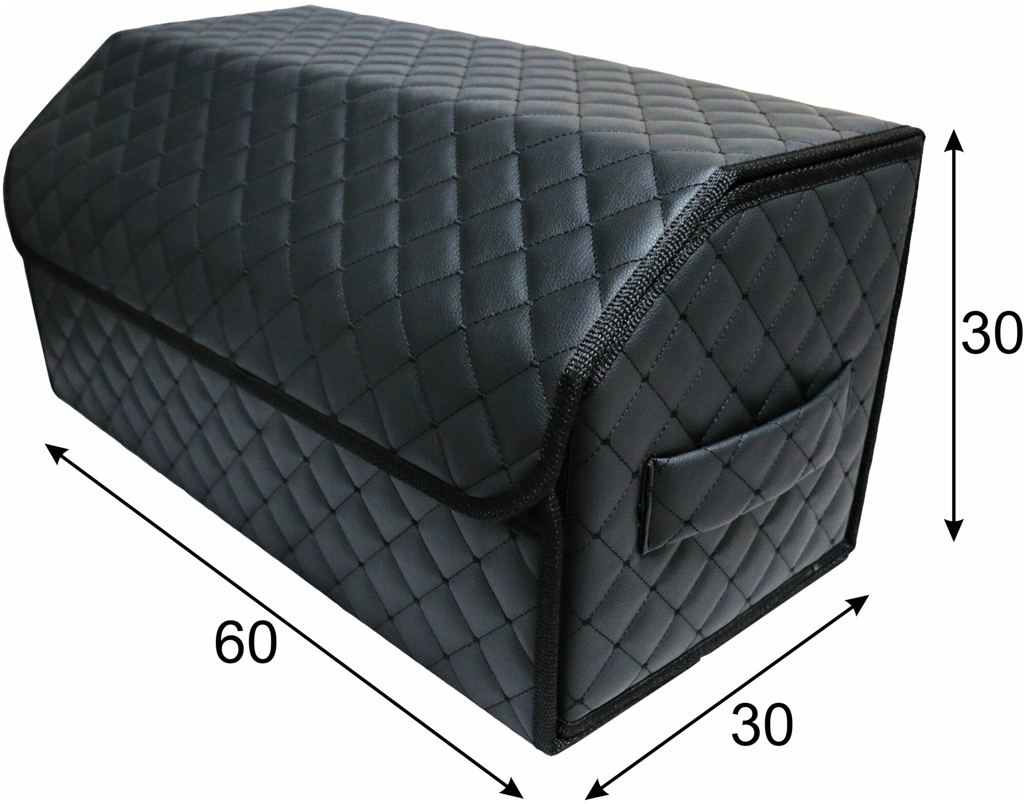 Аксессуары для авто/Органайзер в багажник 60х30х30 рисунок фигурный ромб черный/строчка белая/саквояж/бокс/кофр для авто