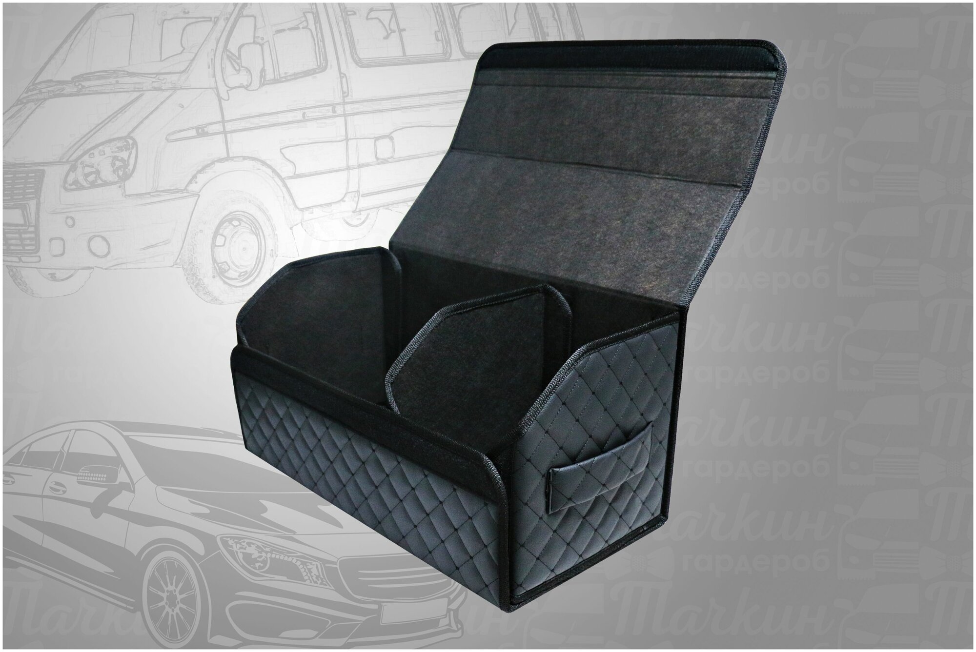 Аксессуары для авто/Органайзер в багажник 60*30*35 квадрат черный/строчка черная