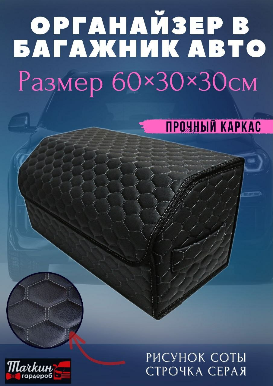 Купить Саквояж-оганайзер в багажник автомобиля 60х30х30 рисунок соты черн/строчка серая/бокс/кофр для авто