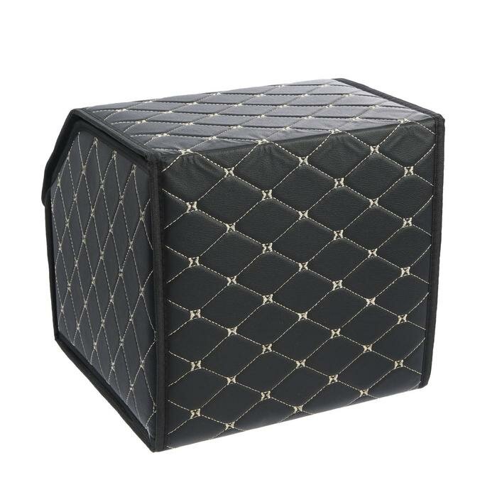 Купить Саквояж в багажник автомобиля, 32х32х30 см, экокожа, черный с белой строчкой
