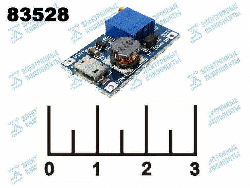 Преобразователь DC/DC вход 2-24V/выход 2.8-28V 2A MT3608 micro USB (повышающий) интересное: