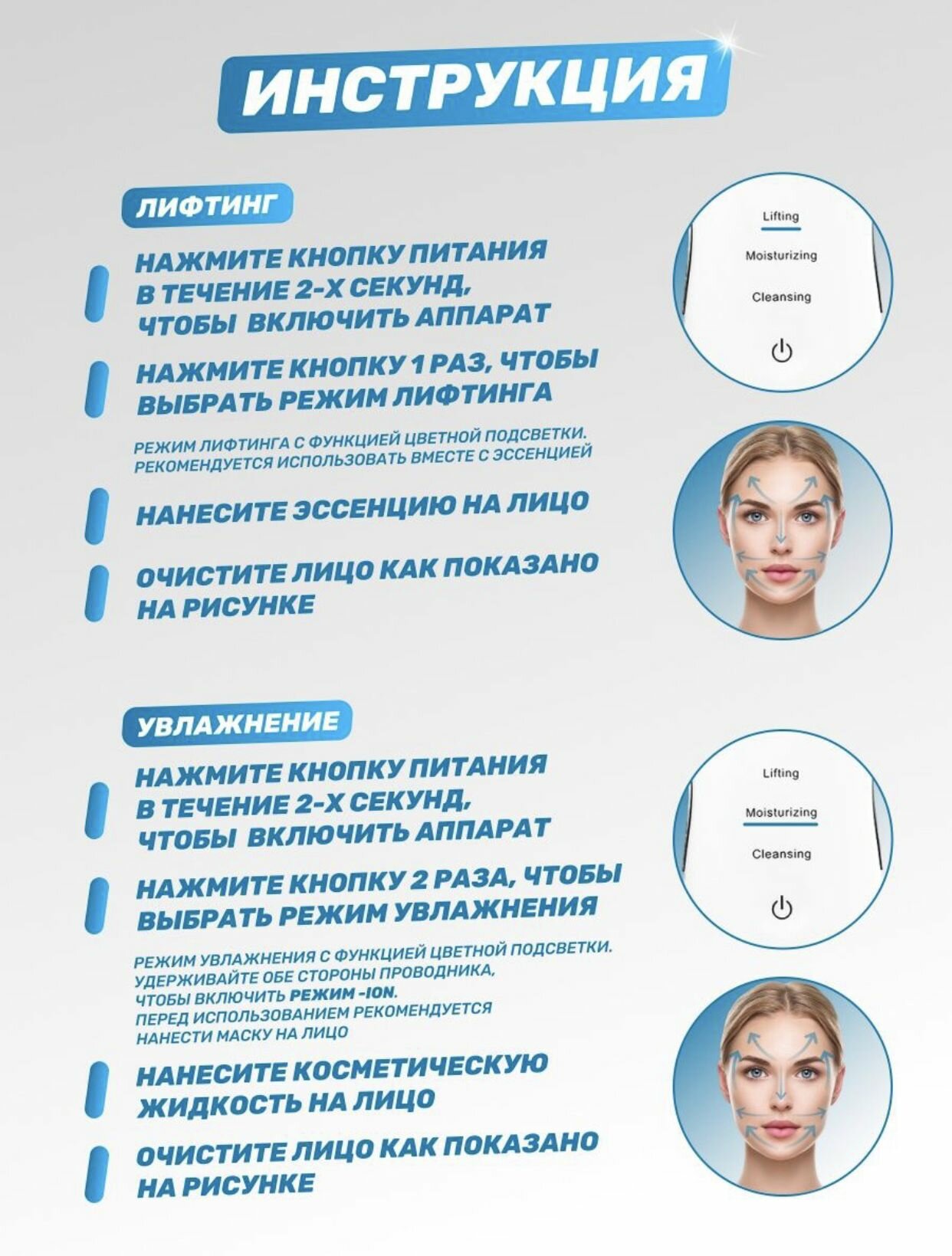 Аппарат для ультразвуковой чистки лица, лифтинга и увлажнения кожи, чистка шеи интересное: