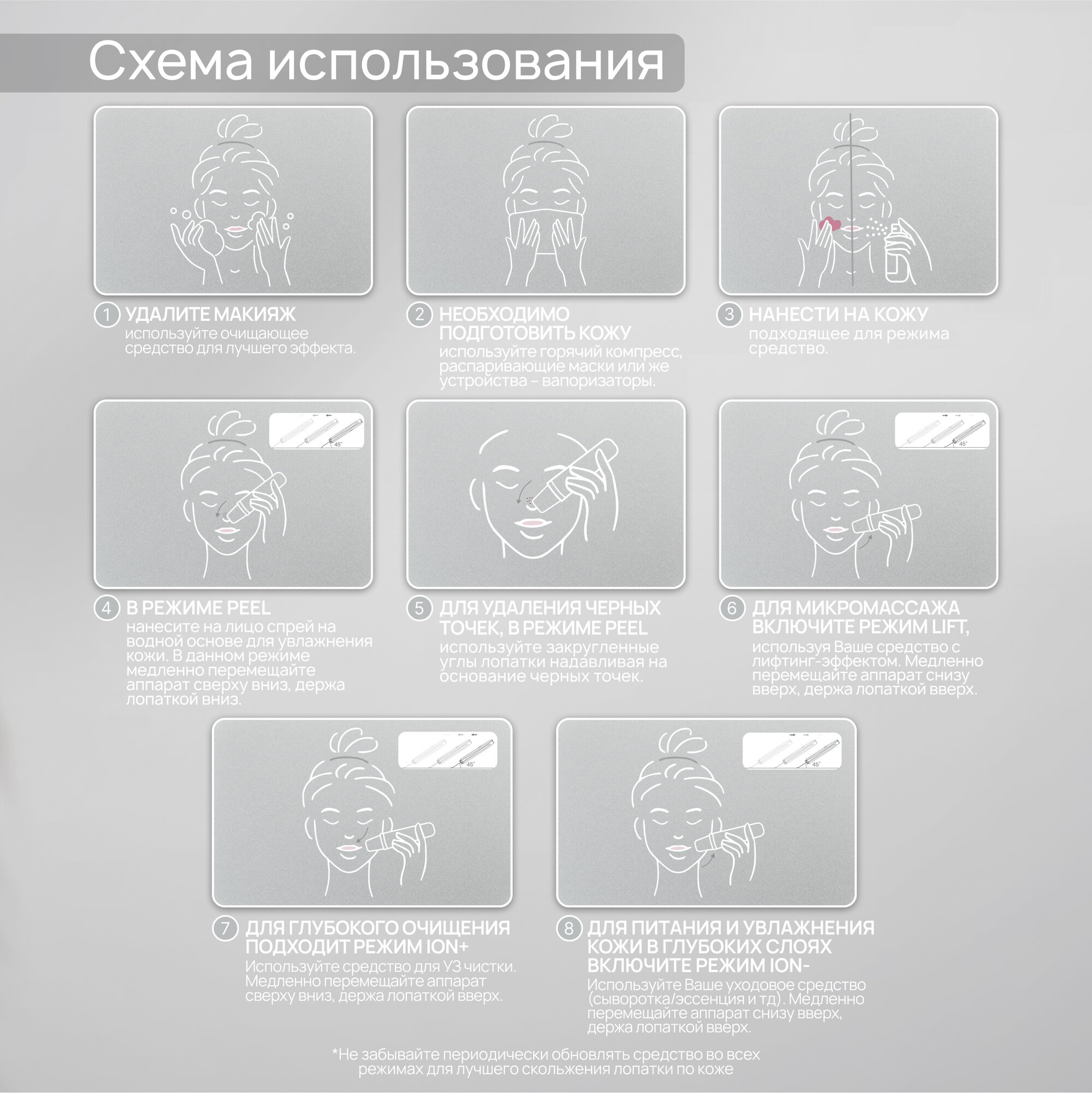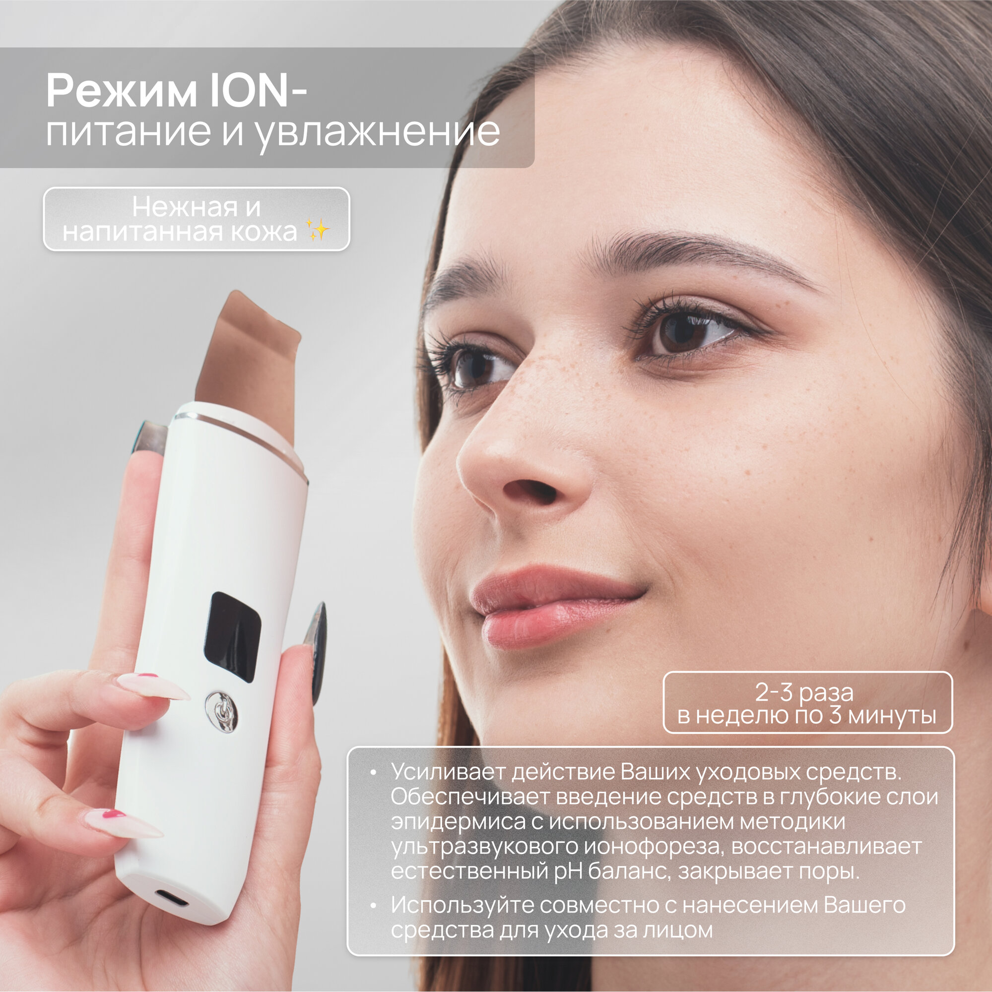 | Принцип работы | ионизация / пилинг / ультразвук |