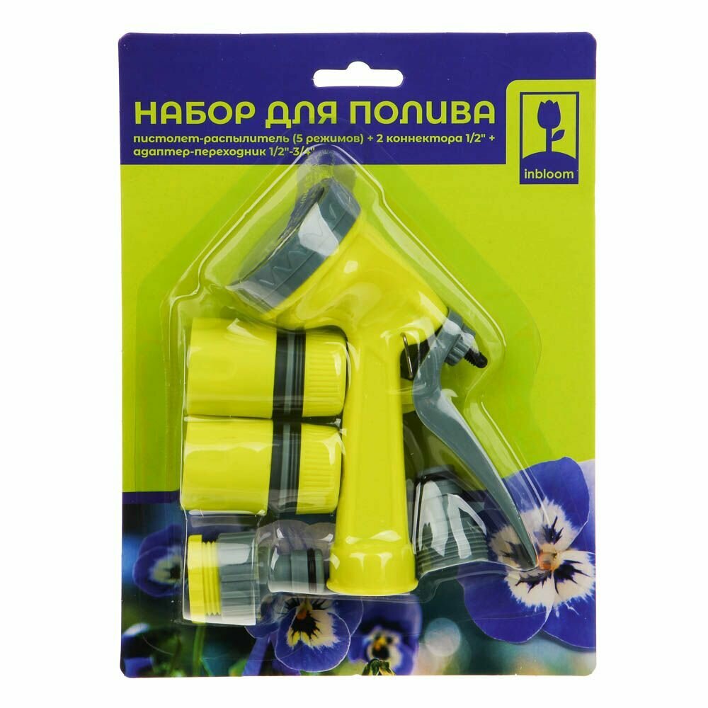Купить Набор для полива 5 предметов INBLOOM (переходникd1/2-3/4", 2коннектора, пистолет 5реж)