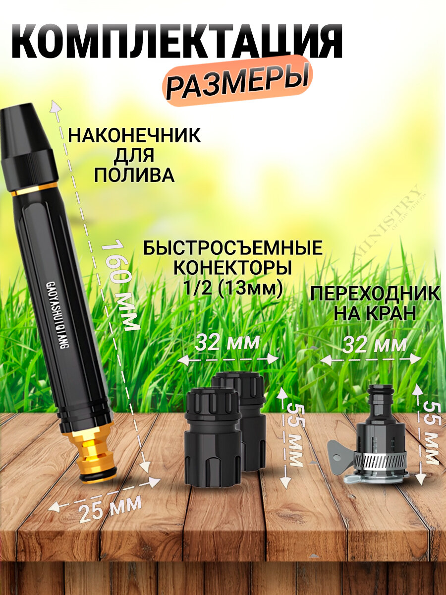| Комплектация | насадка распылитель, коннектор быстросъем 2 шт 1/2, насадка на гусак крана |