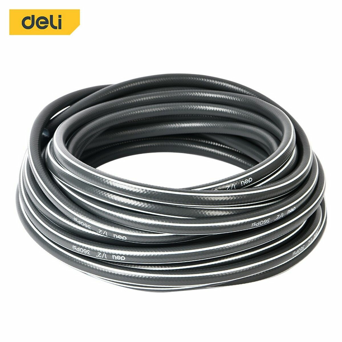 Купить Шланг поливочный армированный четырёхслойный 15 метров Deli DL8072-15 (1/2 дюйма, давление до 25 бар, серый)