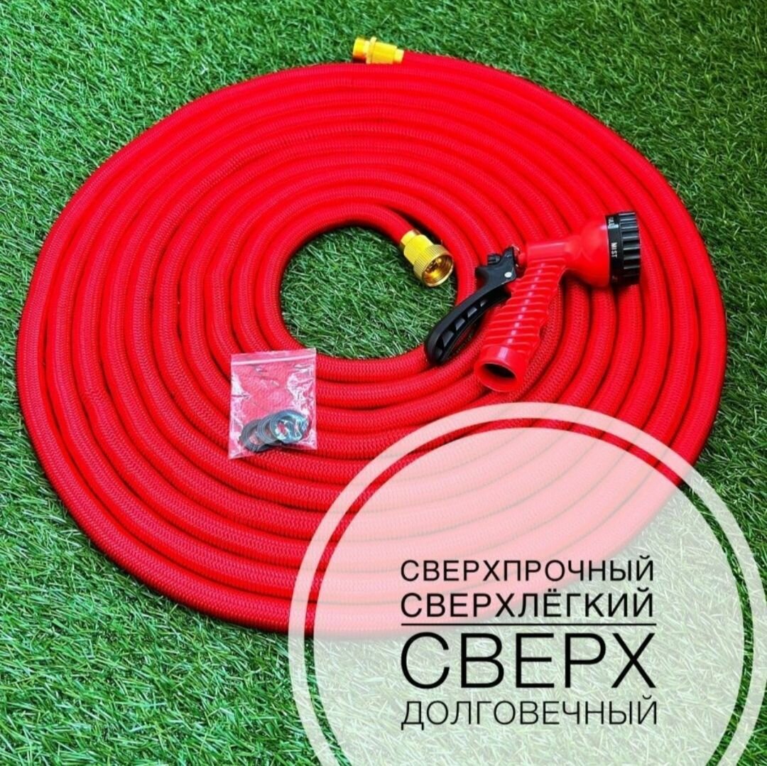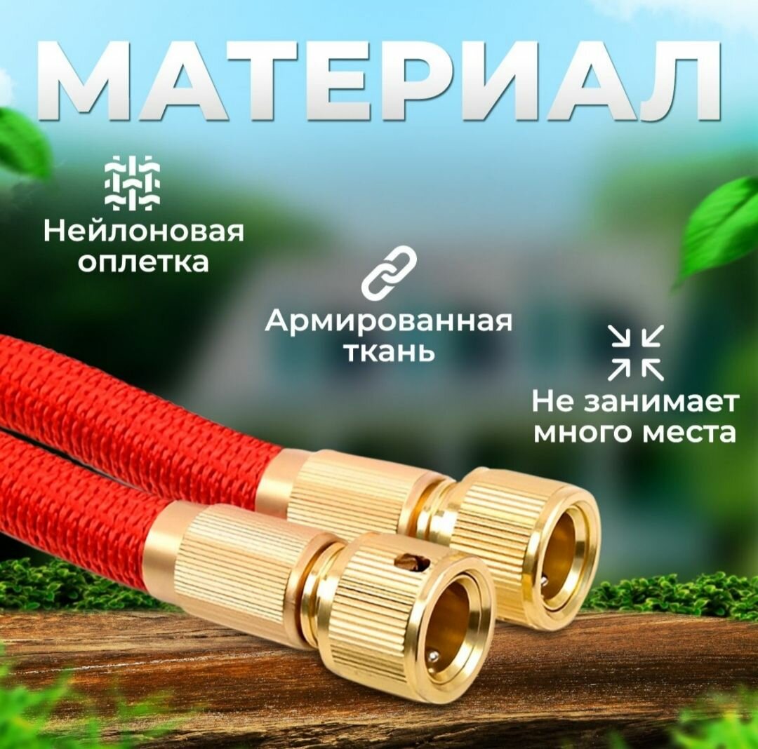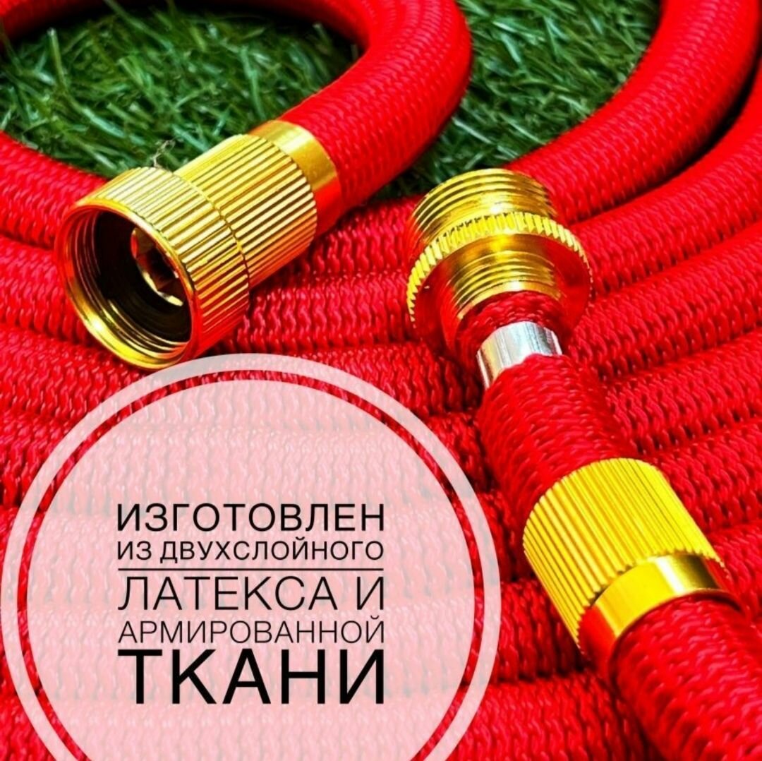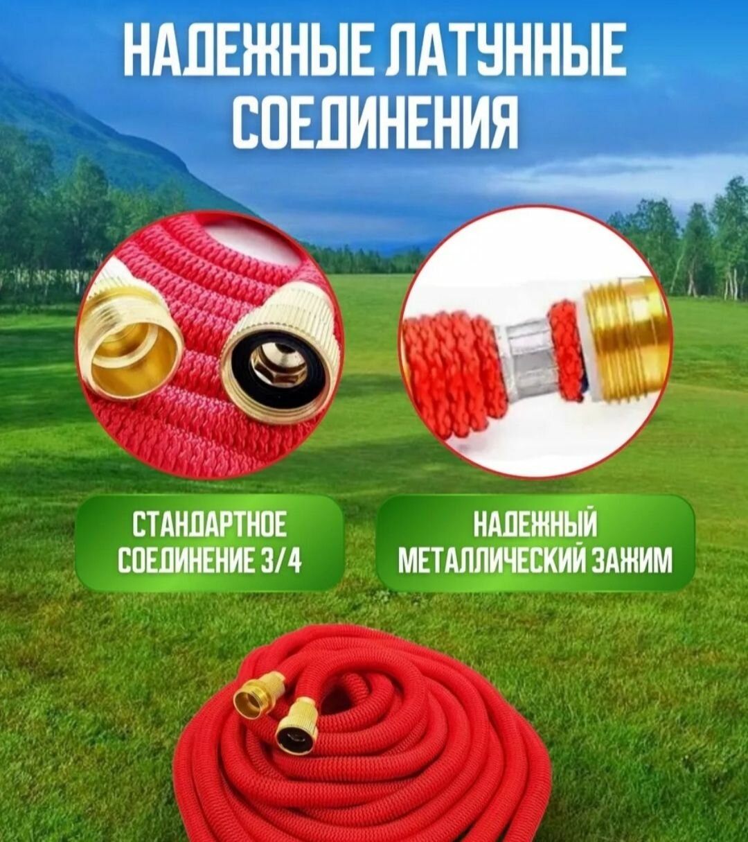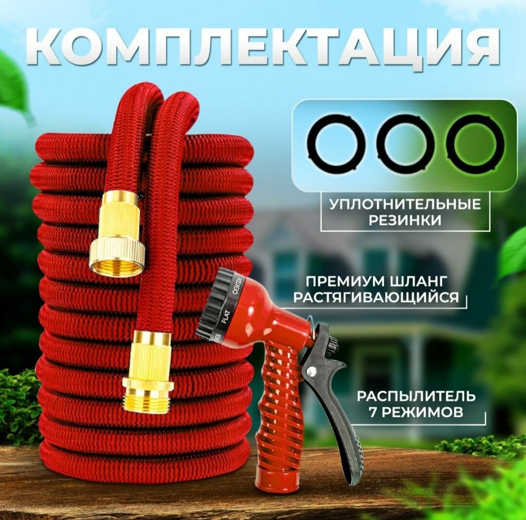 Шланг садовый растягивающийся 7,5 метров для полива с распылителем Magic Garden Hose Xhose / 7,5 метров красный с металлическим соединением интересное:
