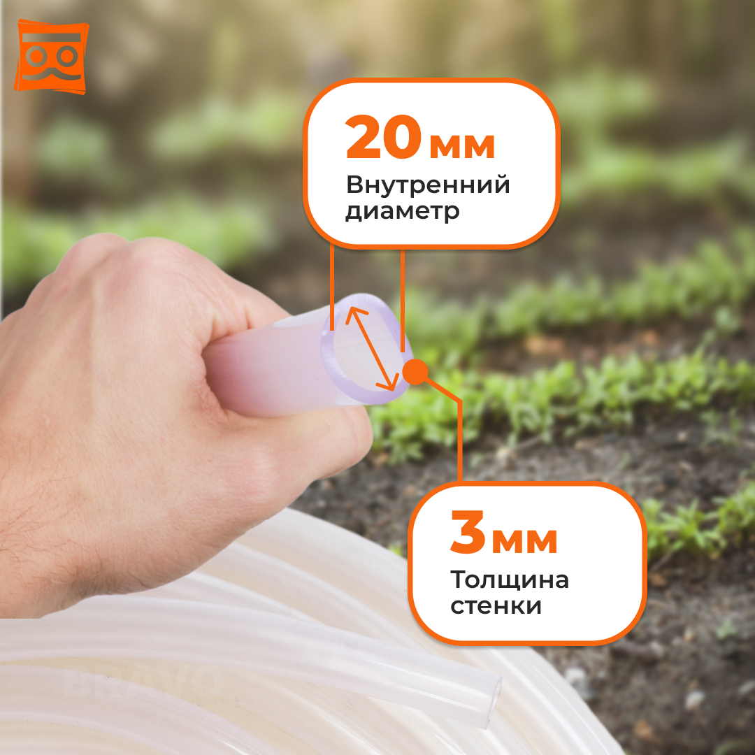 | Дополнительная информация | Шланг для полива силиконовый прозрачный (10 метров) диаметр 20мм (3/4") толщина 3 мм |