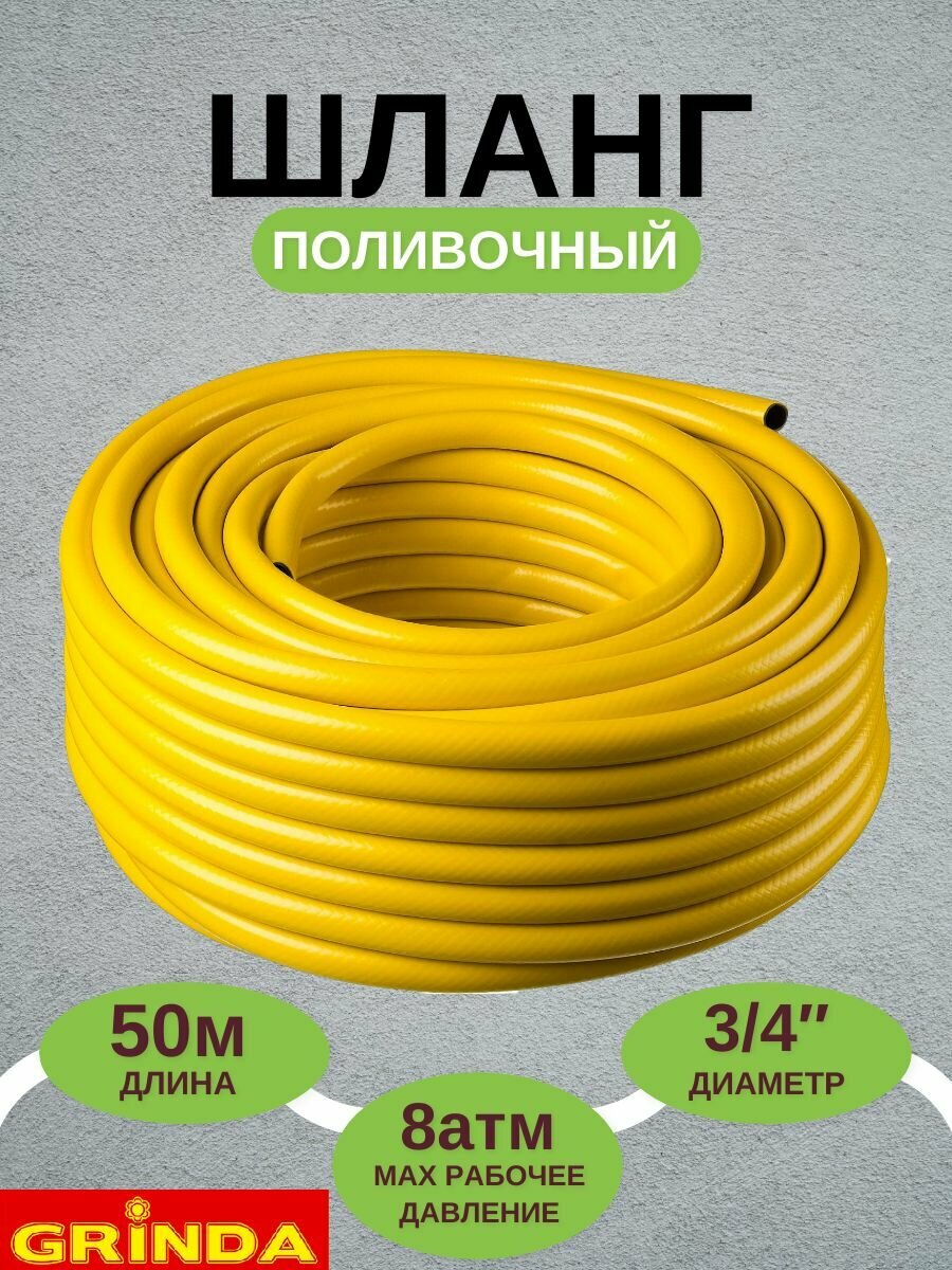 GRINDA Comfort, 3/4″, 50 м, 25 атм, трёхслойный, армированный, поливочный шланг (8-429003-3/4-50)