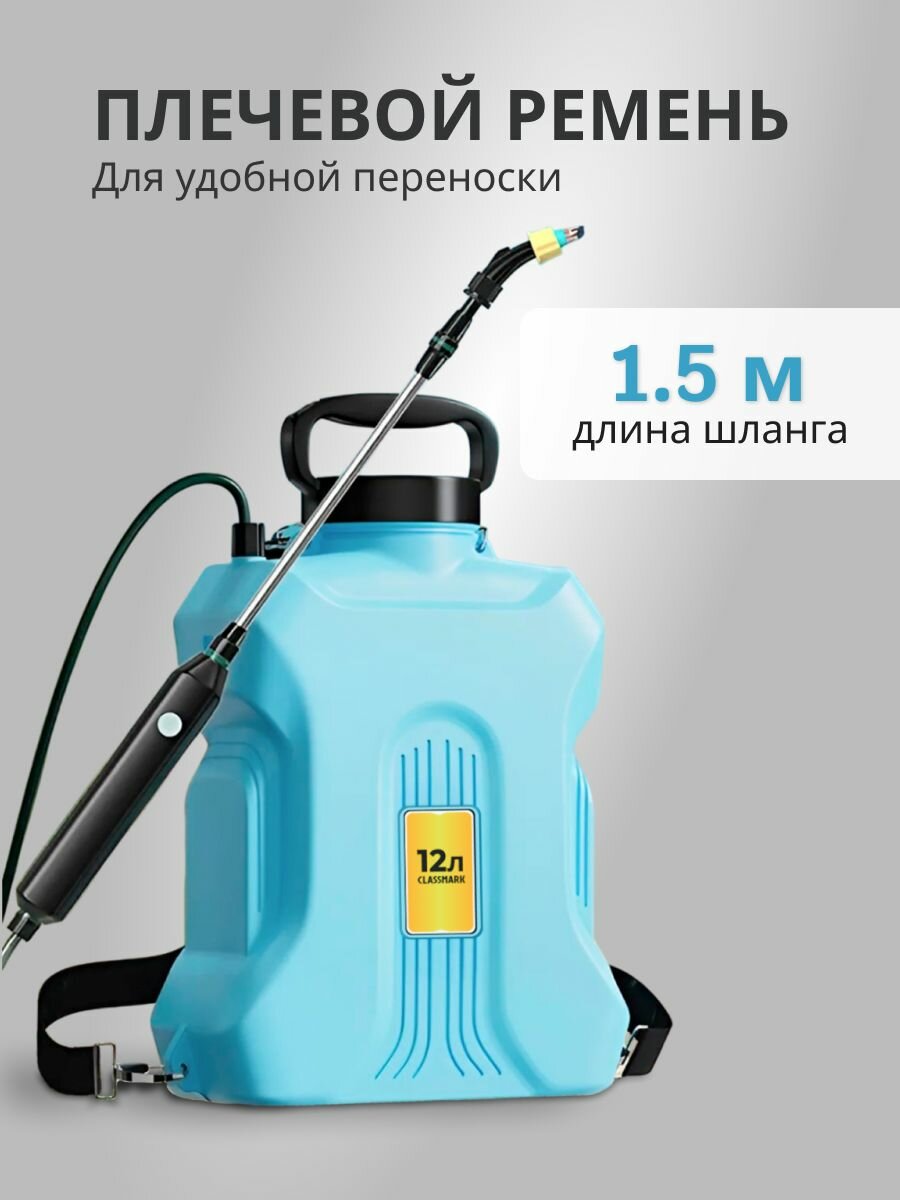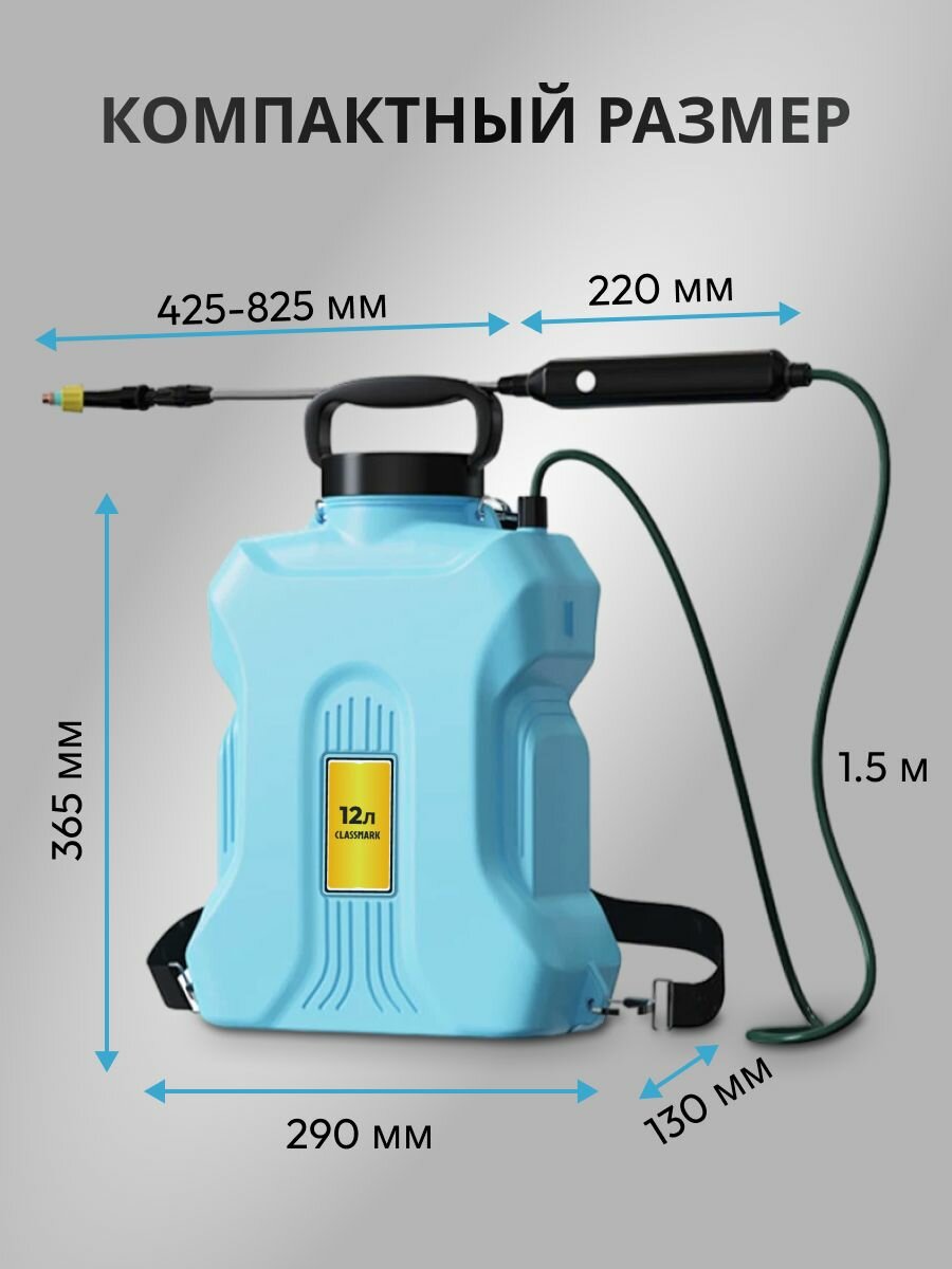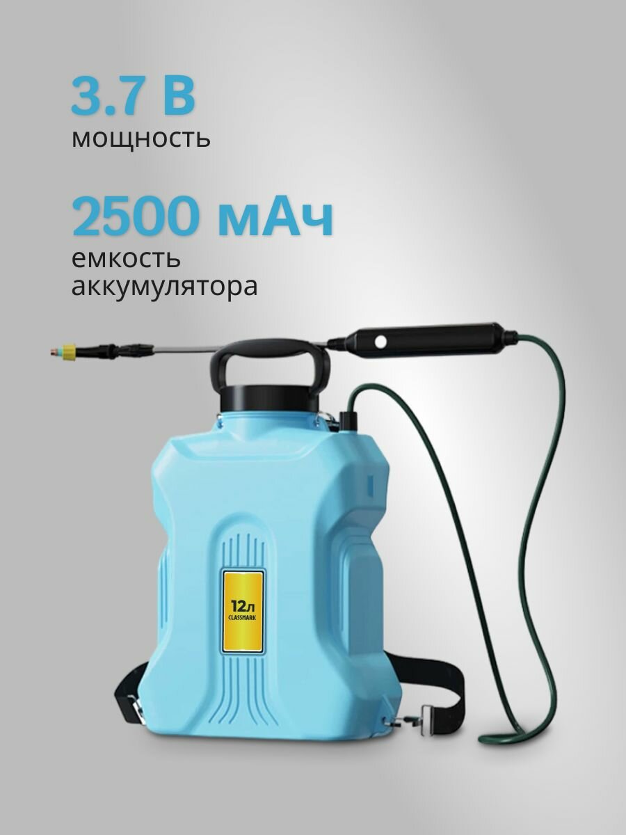Аккумуляторный опрыскиватель садовый Classmark пульверизатор ручной, напряжение 3.7 В, объем бака 12 л, длина шланга 1.5 м, расход 0.3 л/мин интересное: