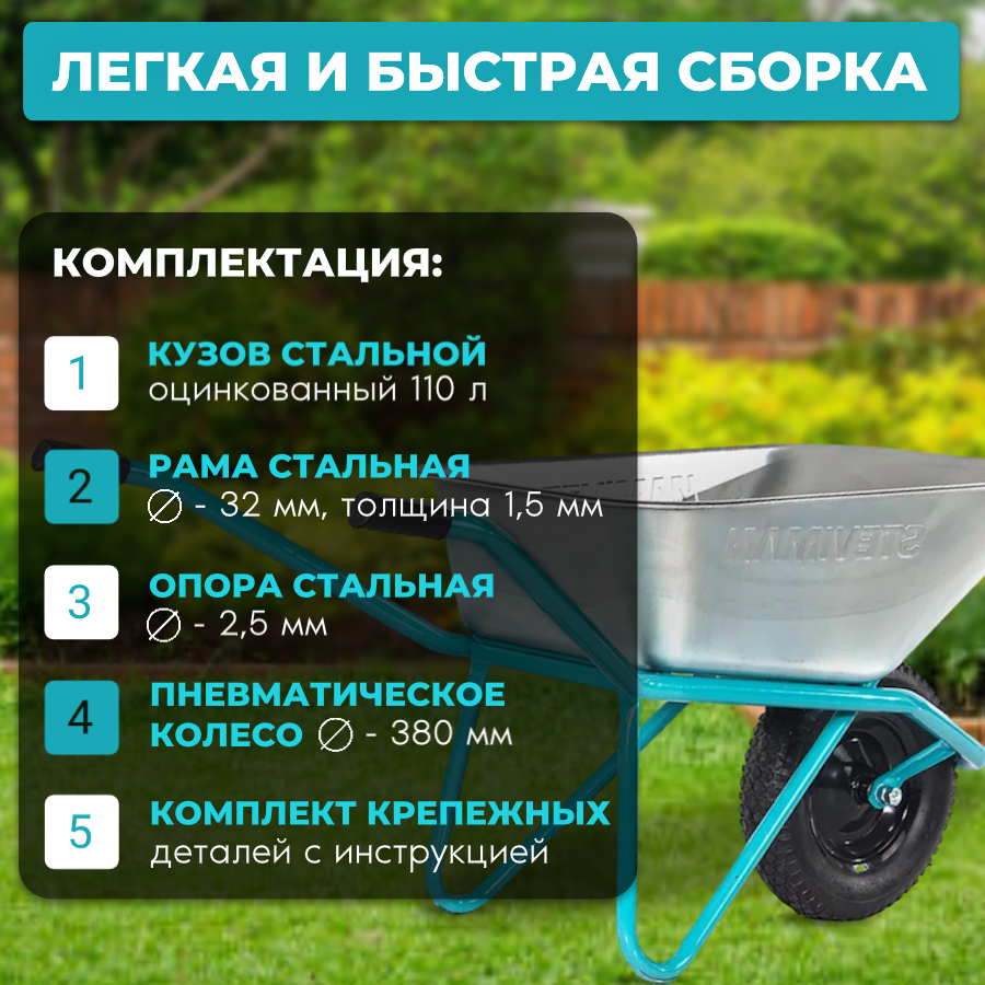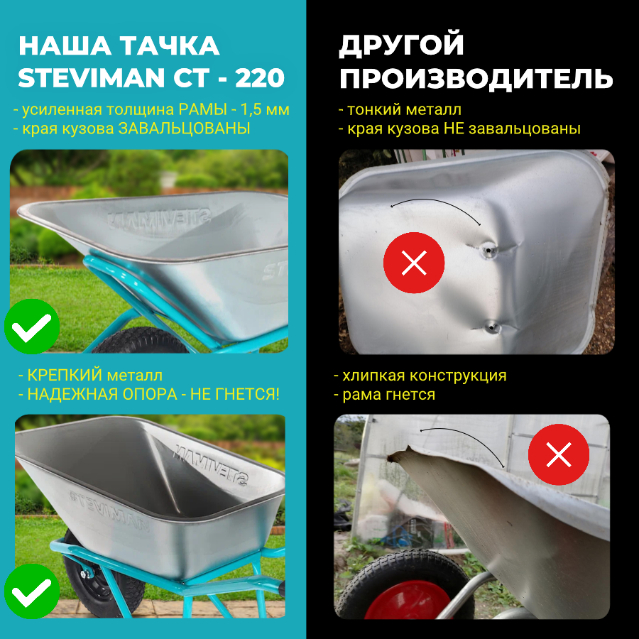 Тачка садовая/строительная Steviman CT-220 одноколесная, 110л., 220 кг, усиленная рама 1,5 мм. интересное: