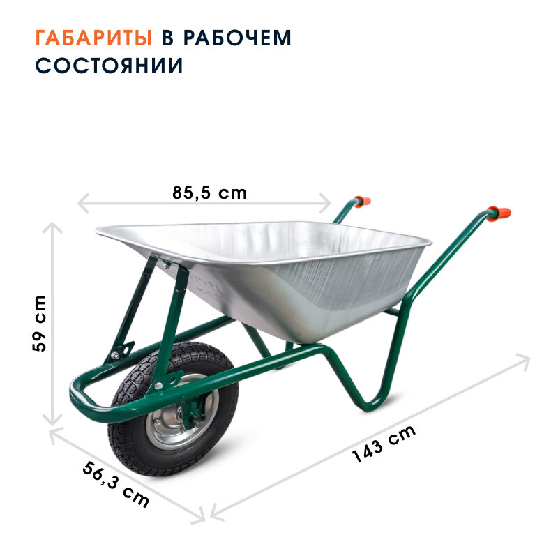 Тачка строительная, двухколёсная: груз/п 350 кг, объём 150 л, красная