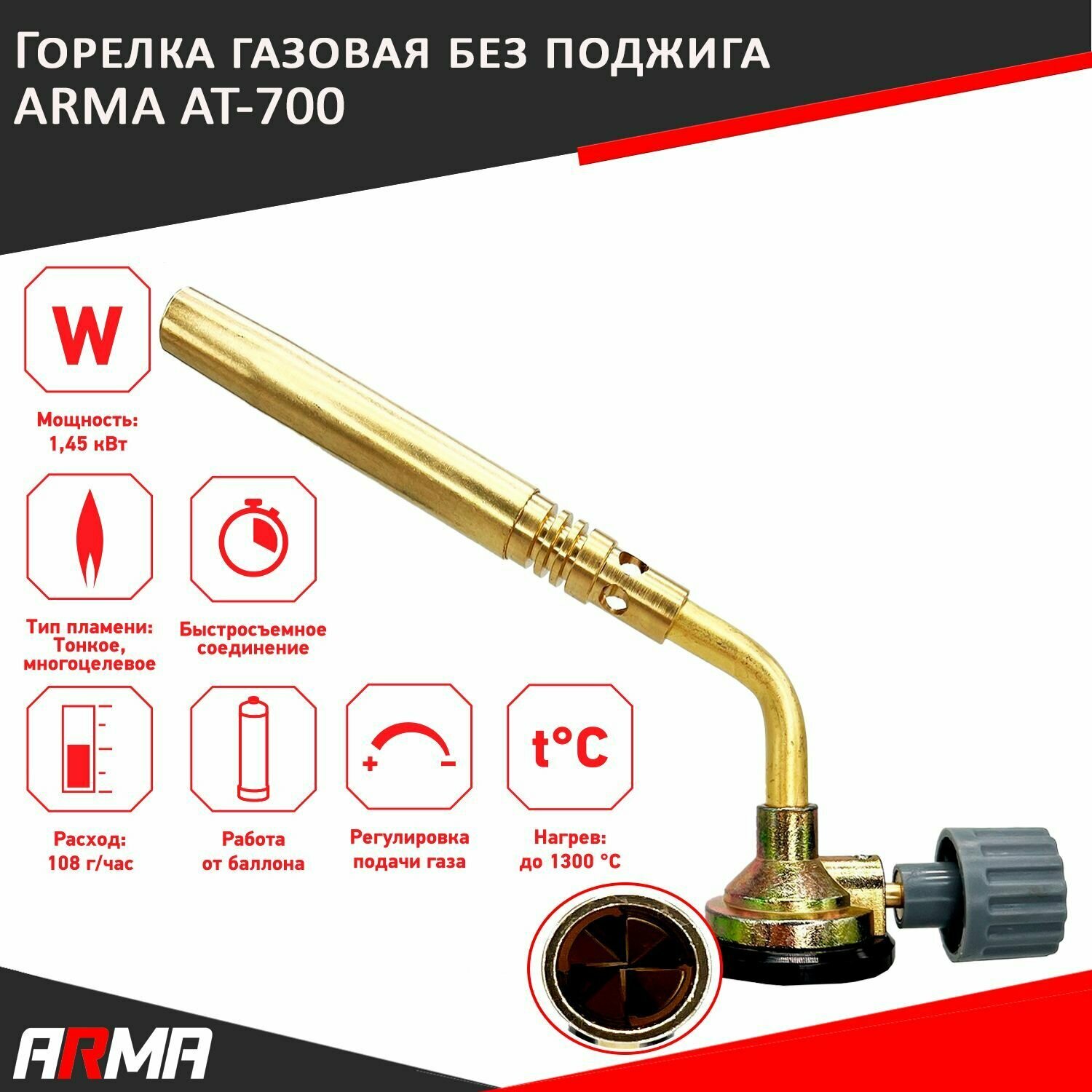Купить Горелка газовая ARMA AT-700, без поджига, подключение на цанговый баллон